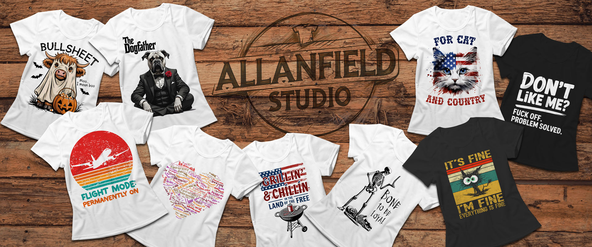 Allanfield Studio is where bold designs meet everyday humor. From sarcastic one-liners to foodie obsessions and pop-culture spoofs, we create tees that speak louder than words. Born as a passion project, now a growing brand with a smile at its core.