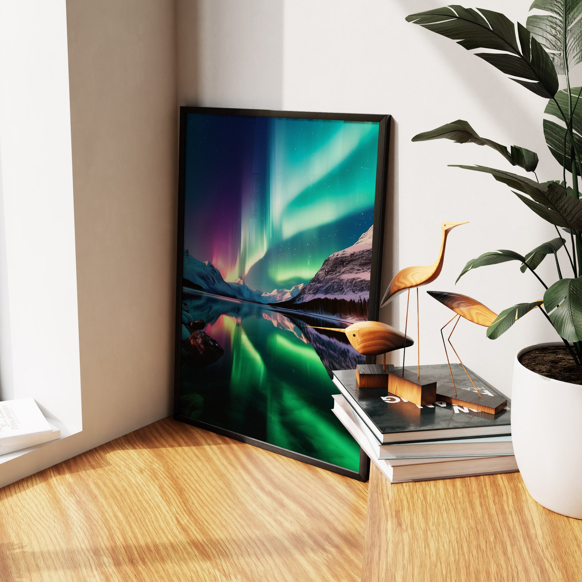 - Hängen Sie den kräftigsten Polarlichtstrom in die Mitte und flankieren Sie ihn mit den breiteren Himmelsrahmen für eine immersive Symmetrie. Drucken Sie auf mattem oder glänzendem Papier, um Blendeffekte zu vermeiden und die Farben satt zu halten.