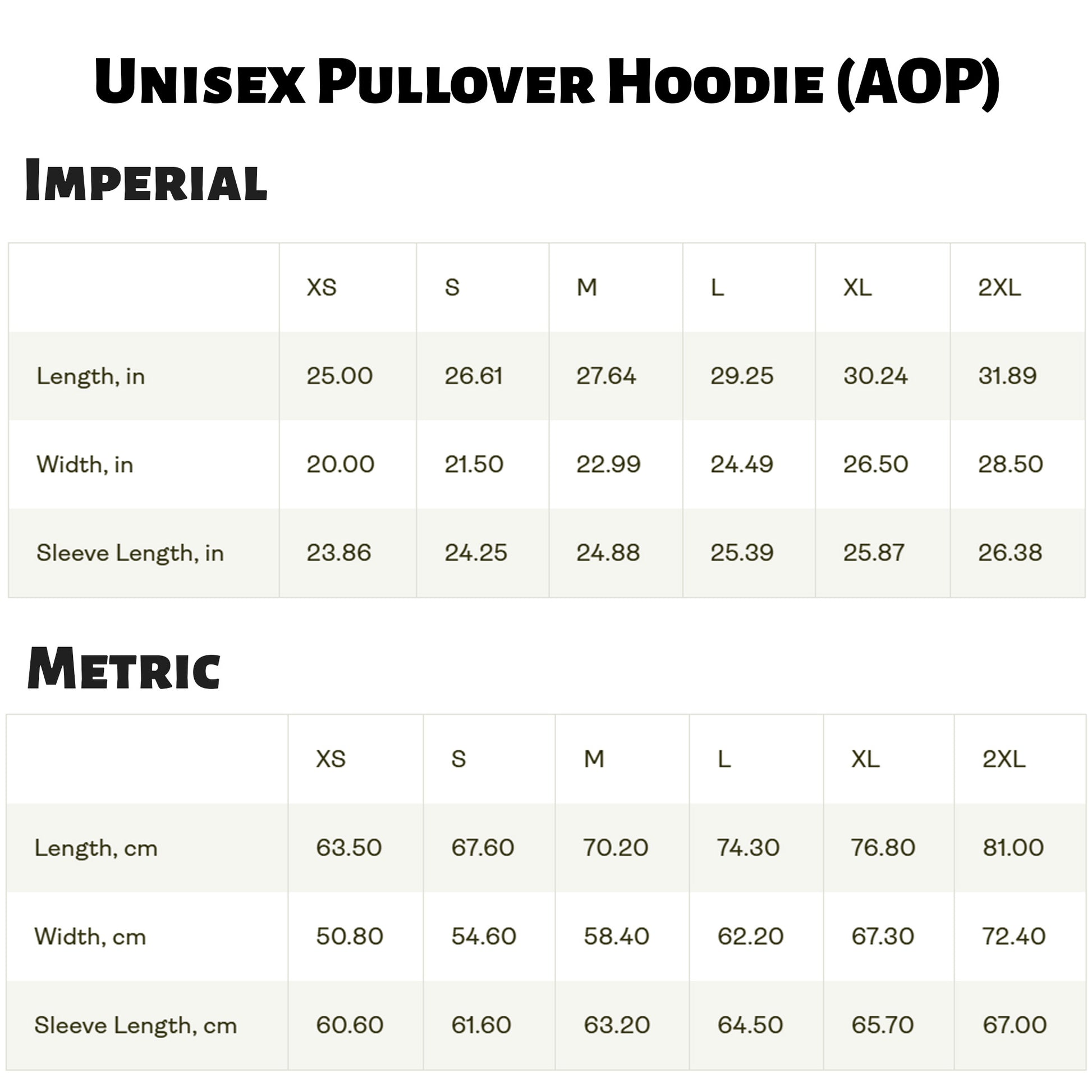Größen - Kapuzenpullover