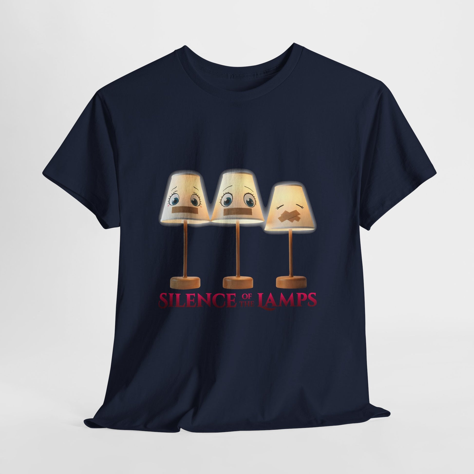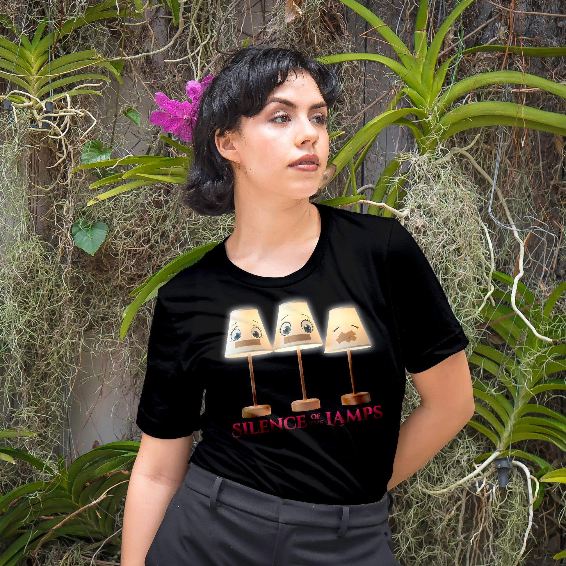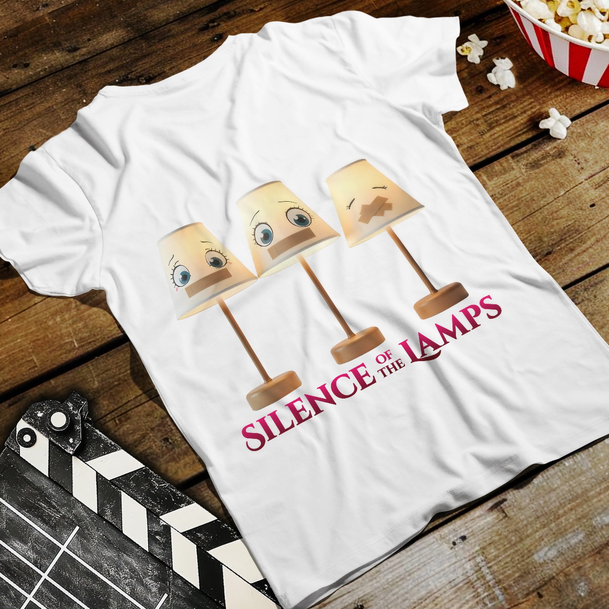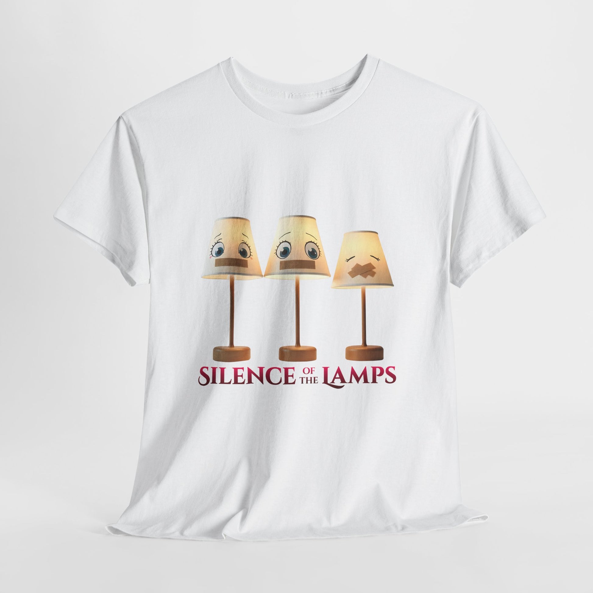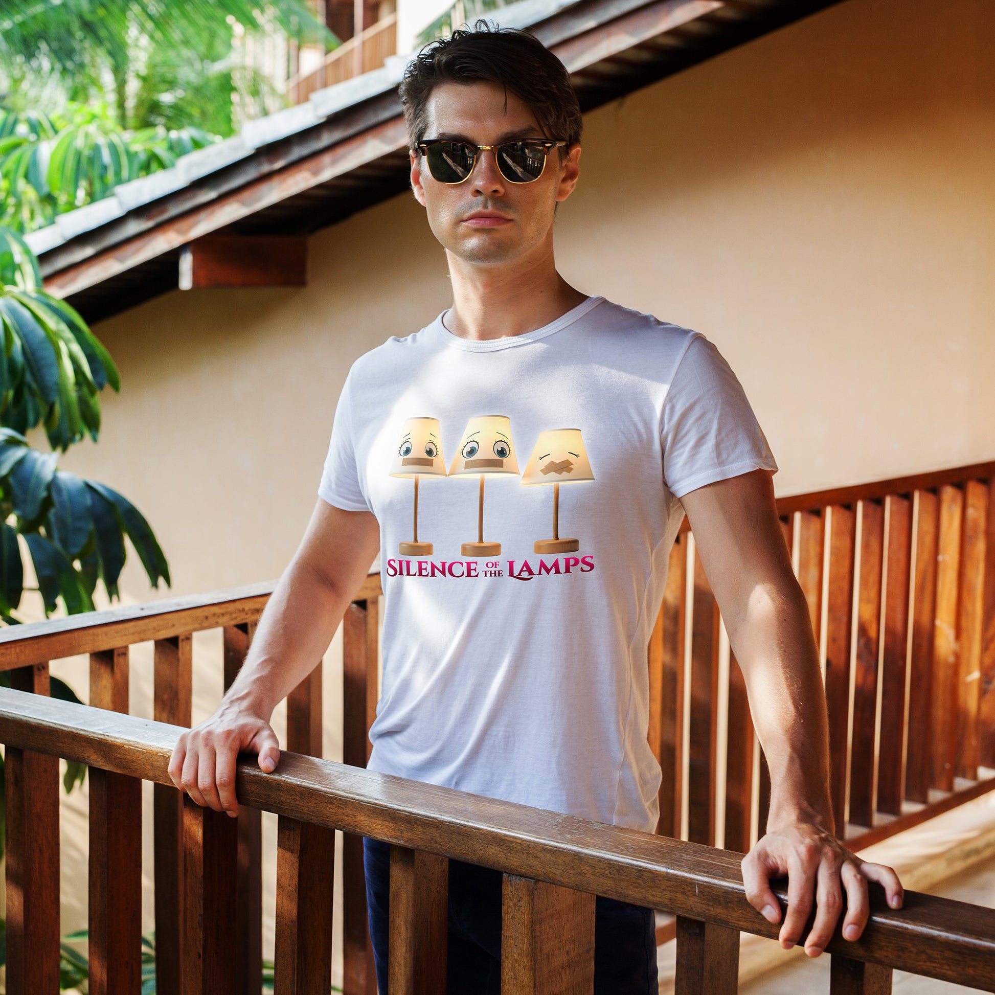 Koszulka z parodią horroru „Cisza lamp” z przerażającymi lampami