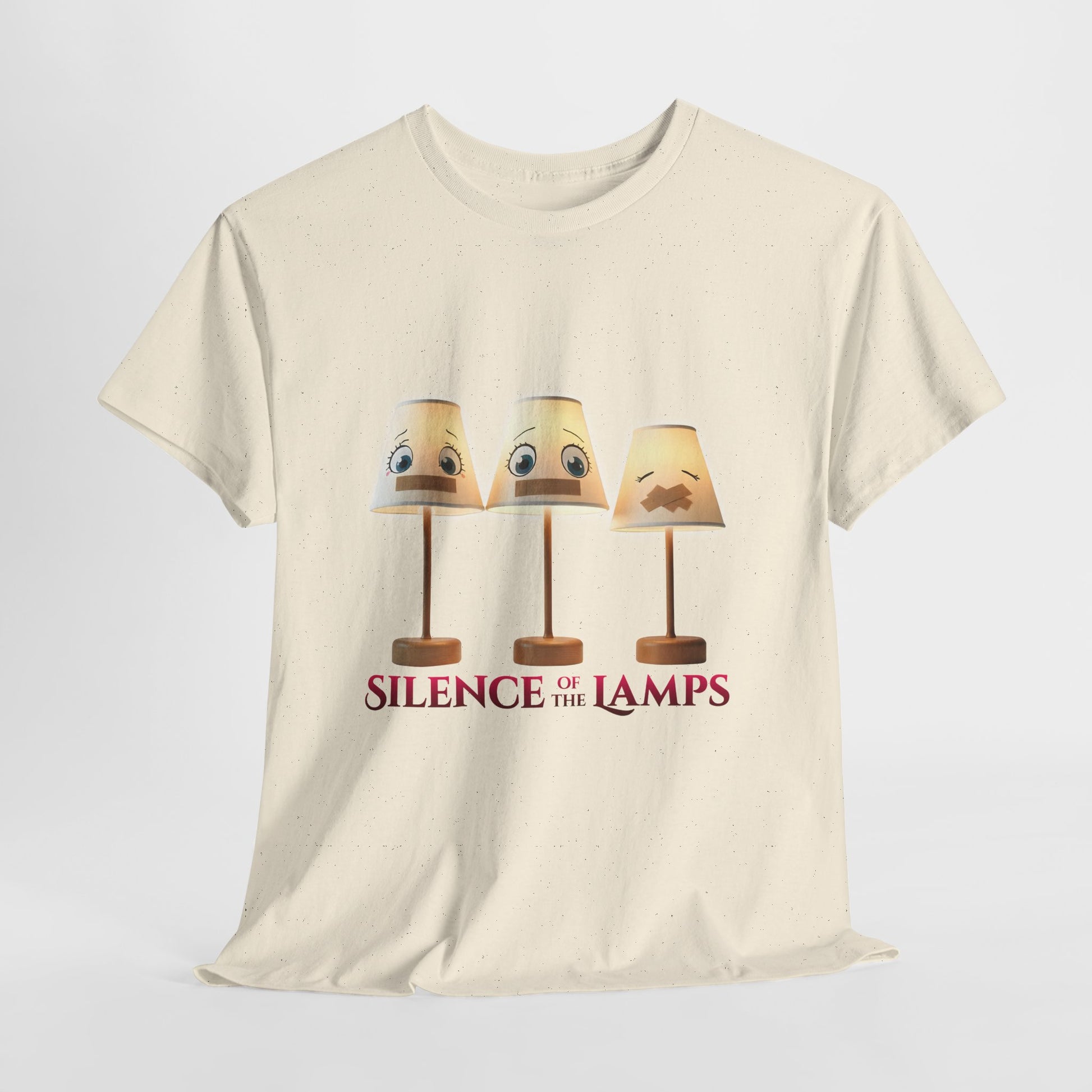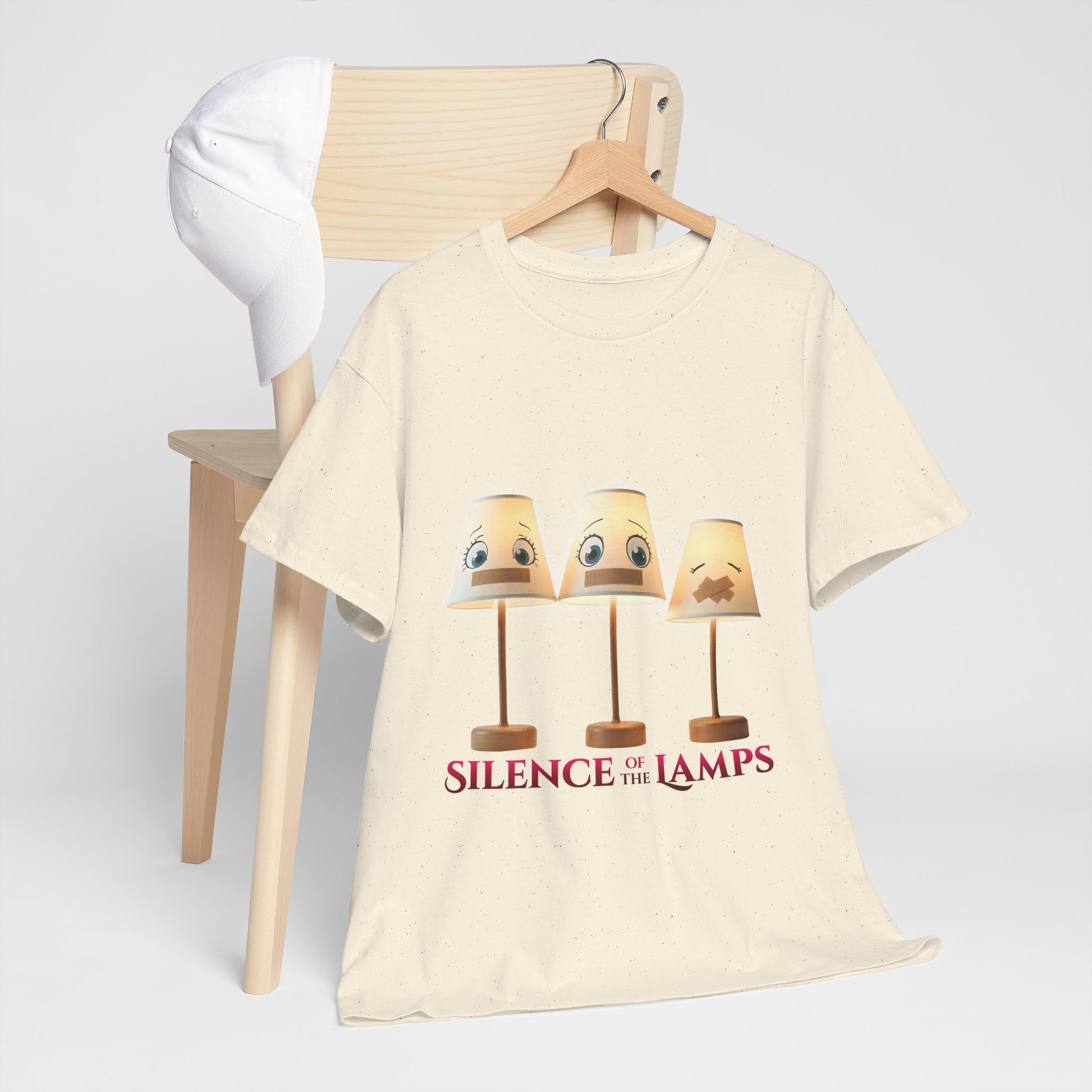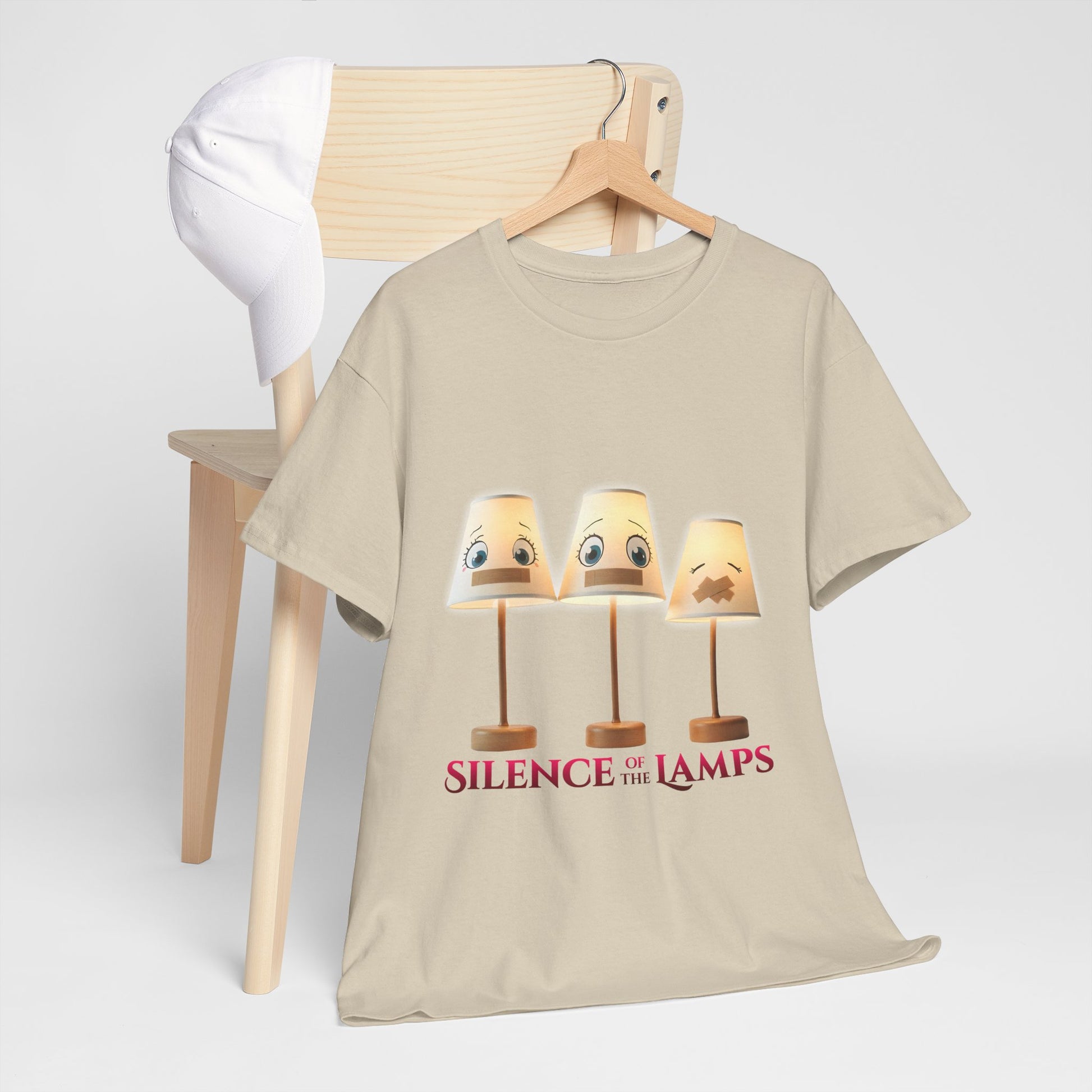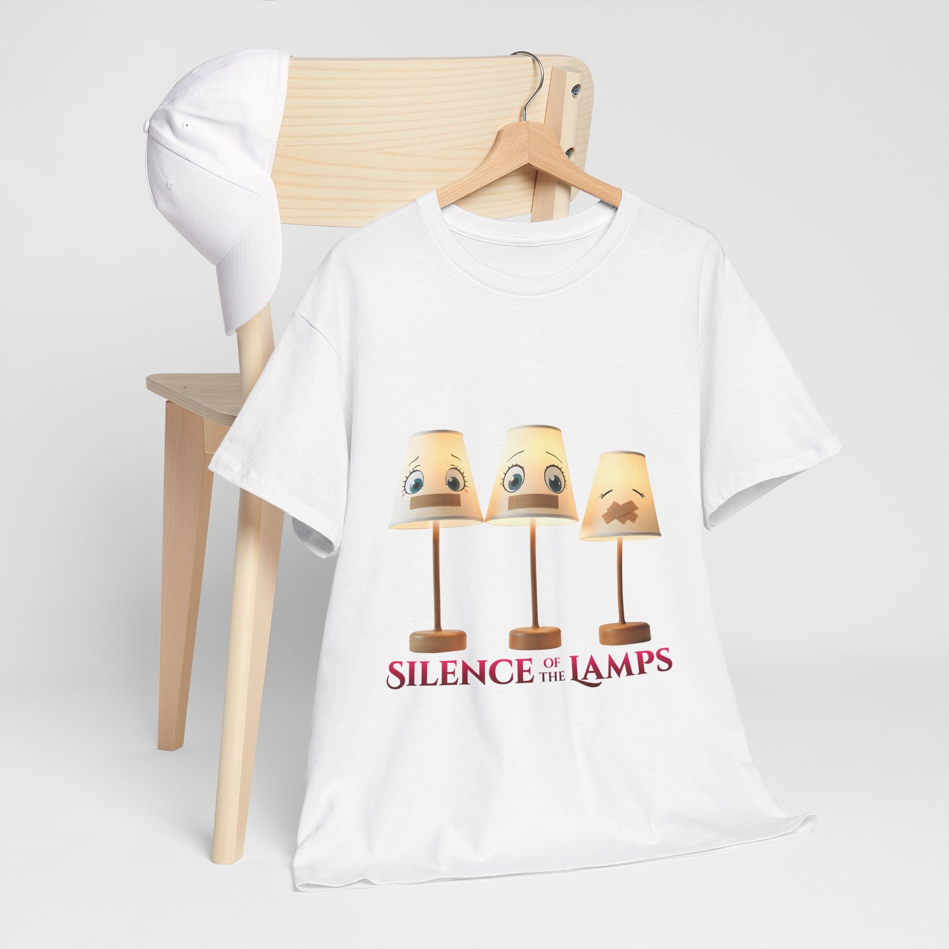 Koszulka z parodią horroru „Cisza lamp” z przerażającymi lampami