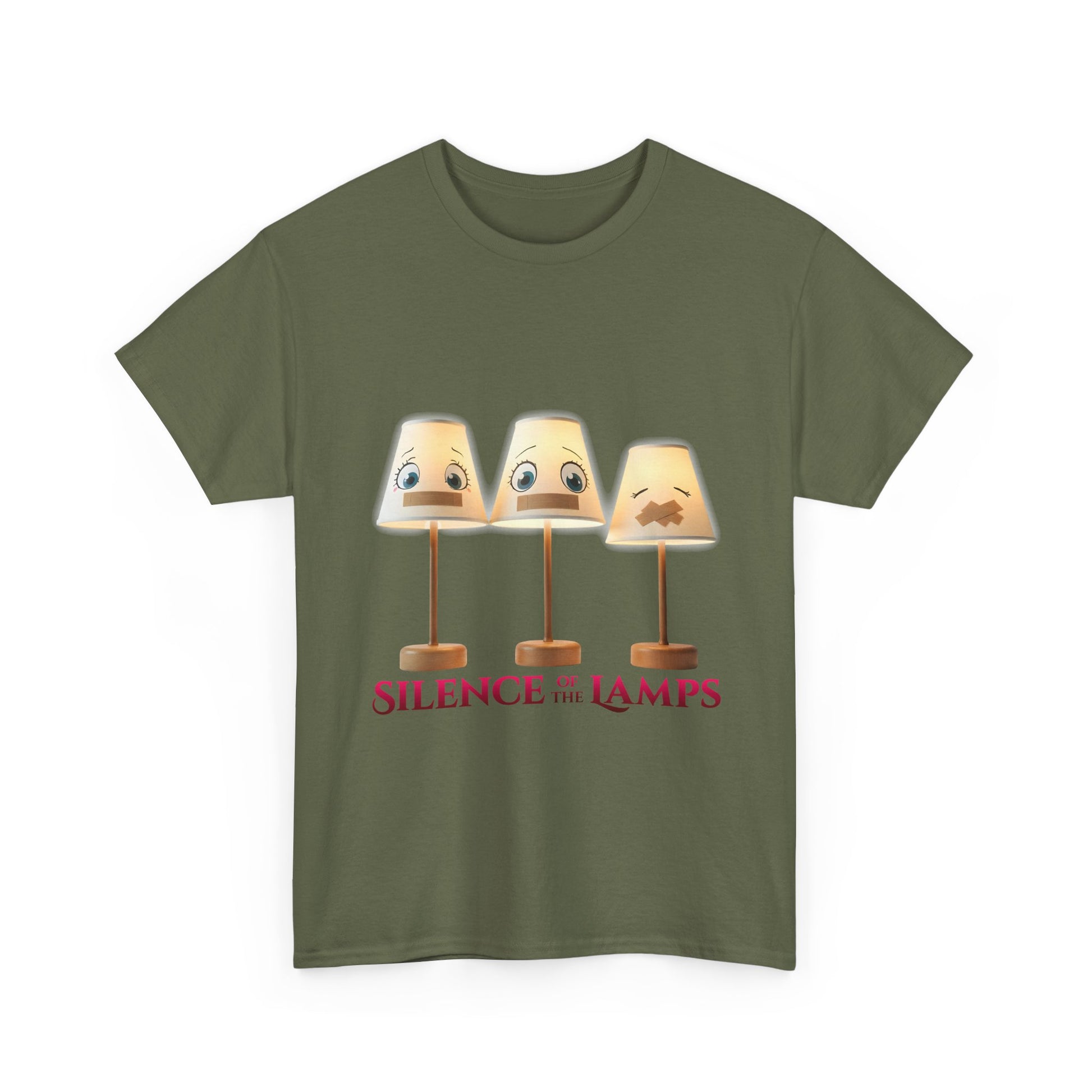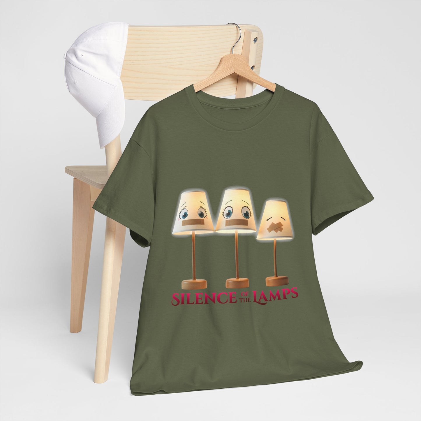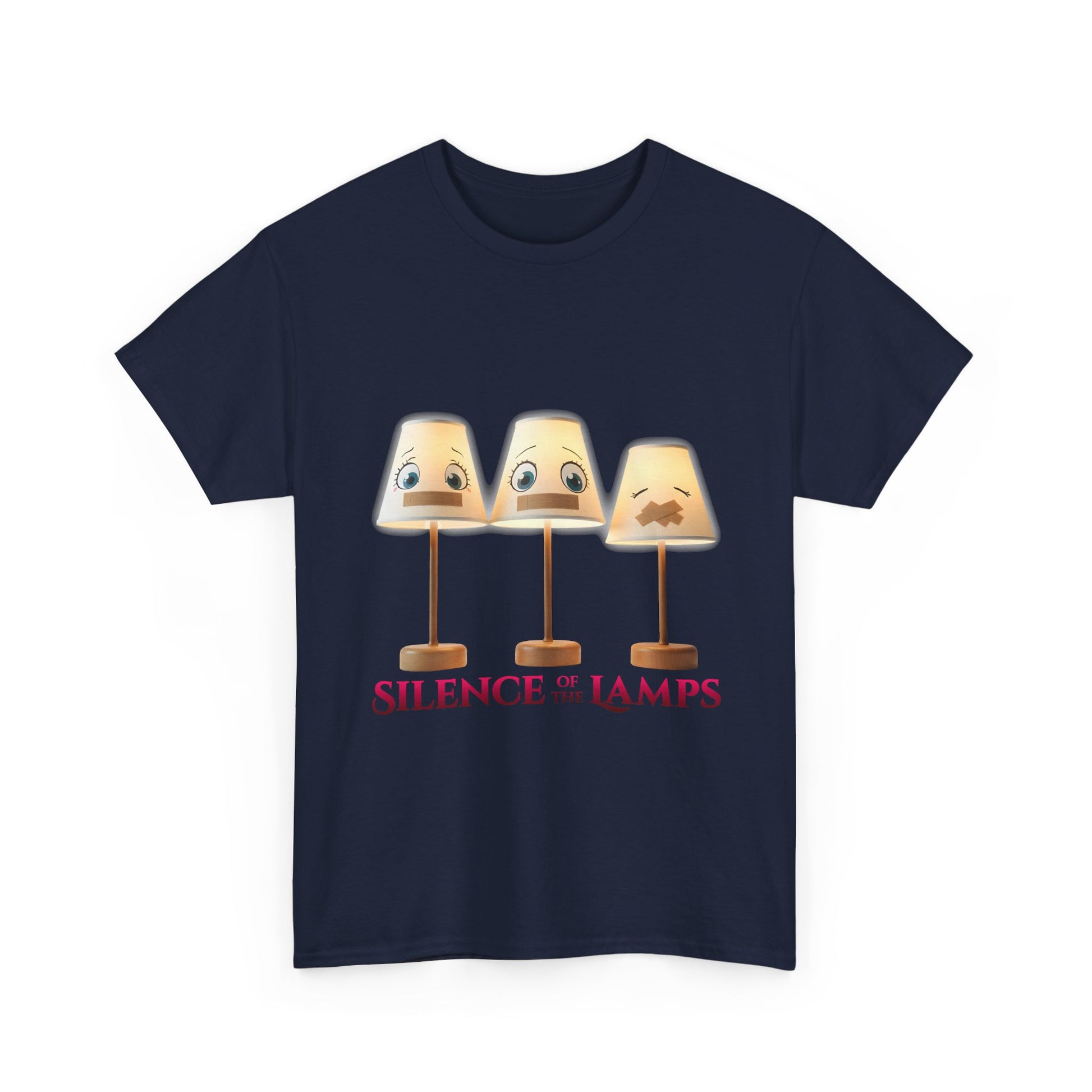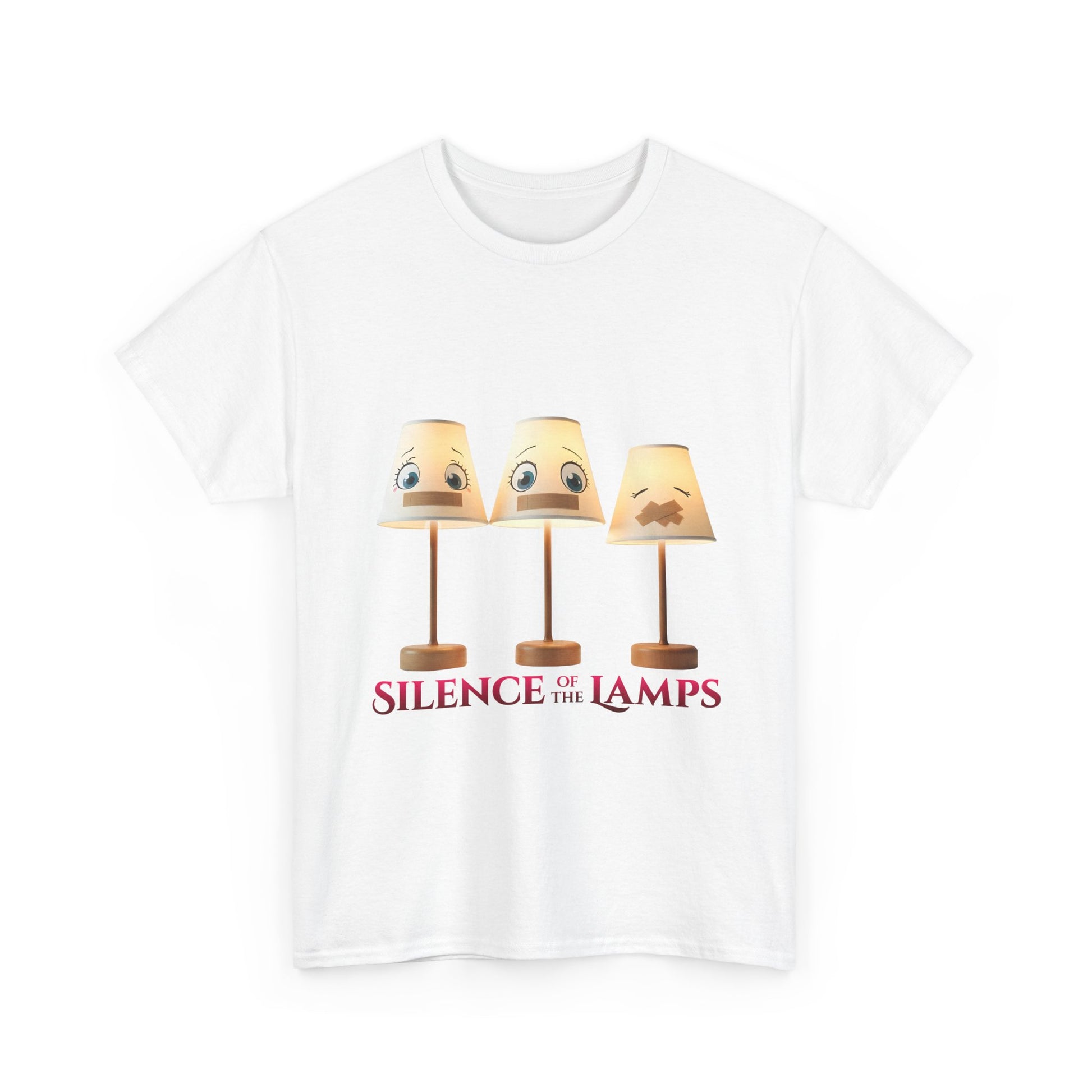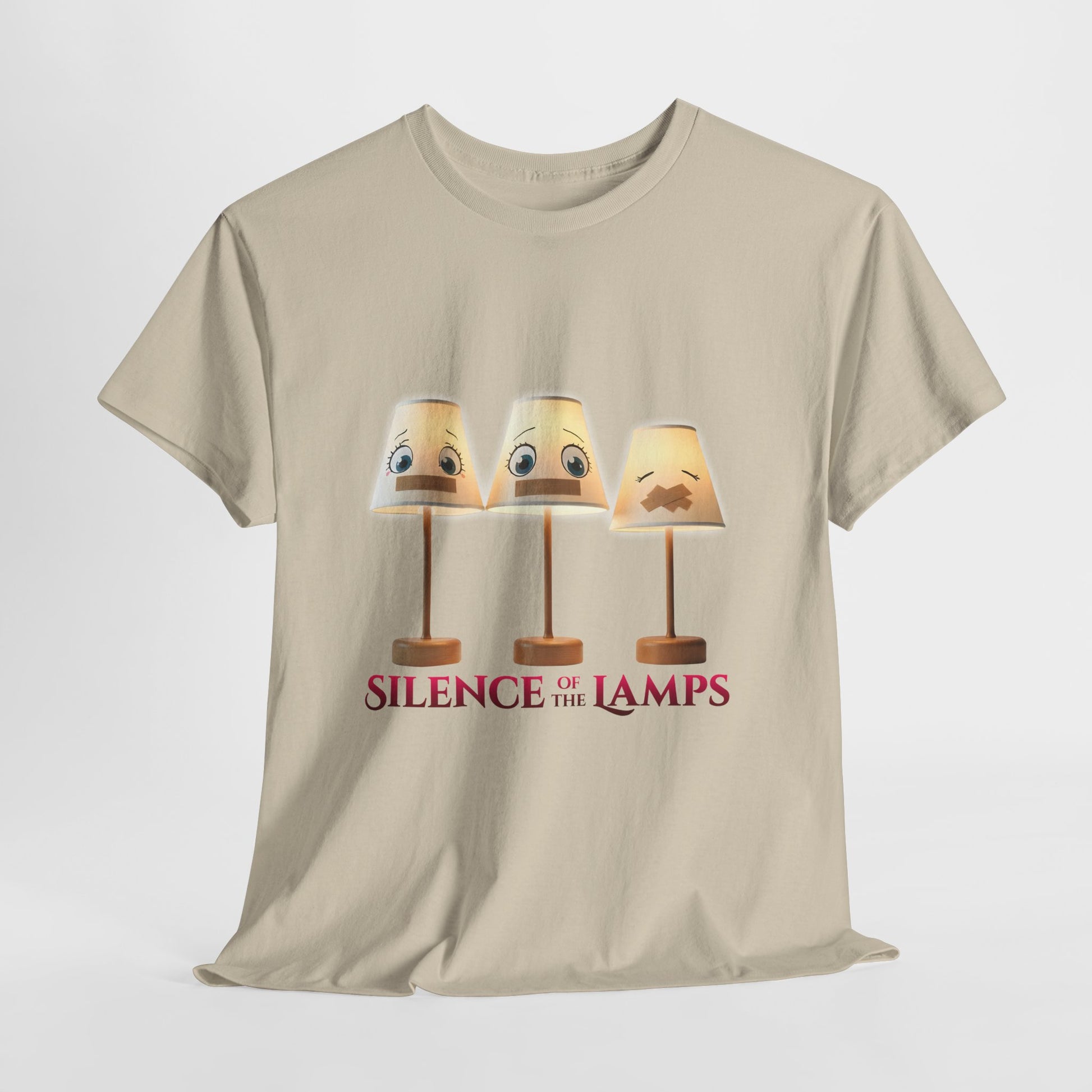 Koszulka z parodią horroru „Cisza lamp” z przerażającymi lampami