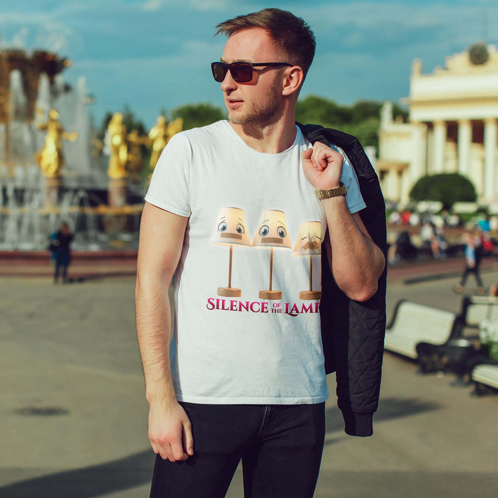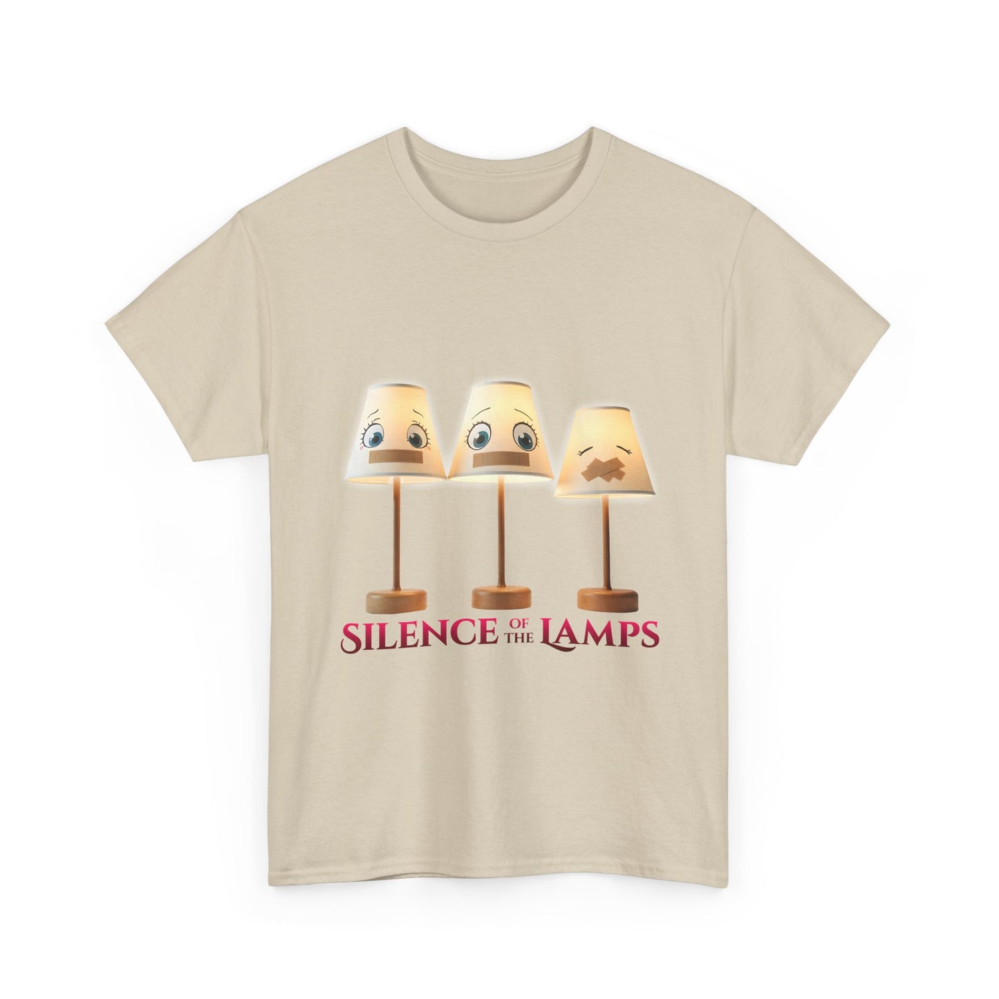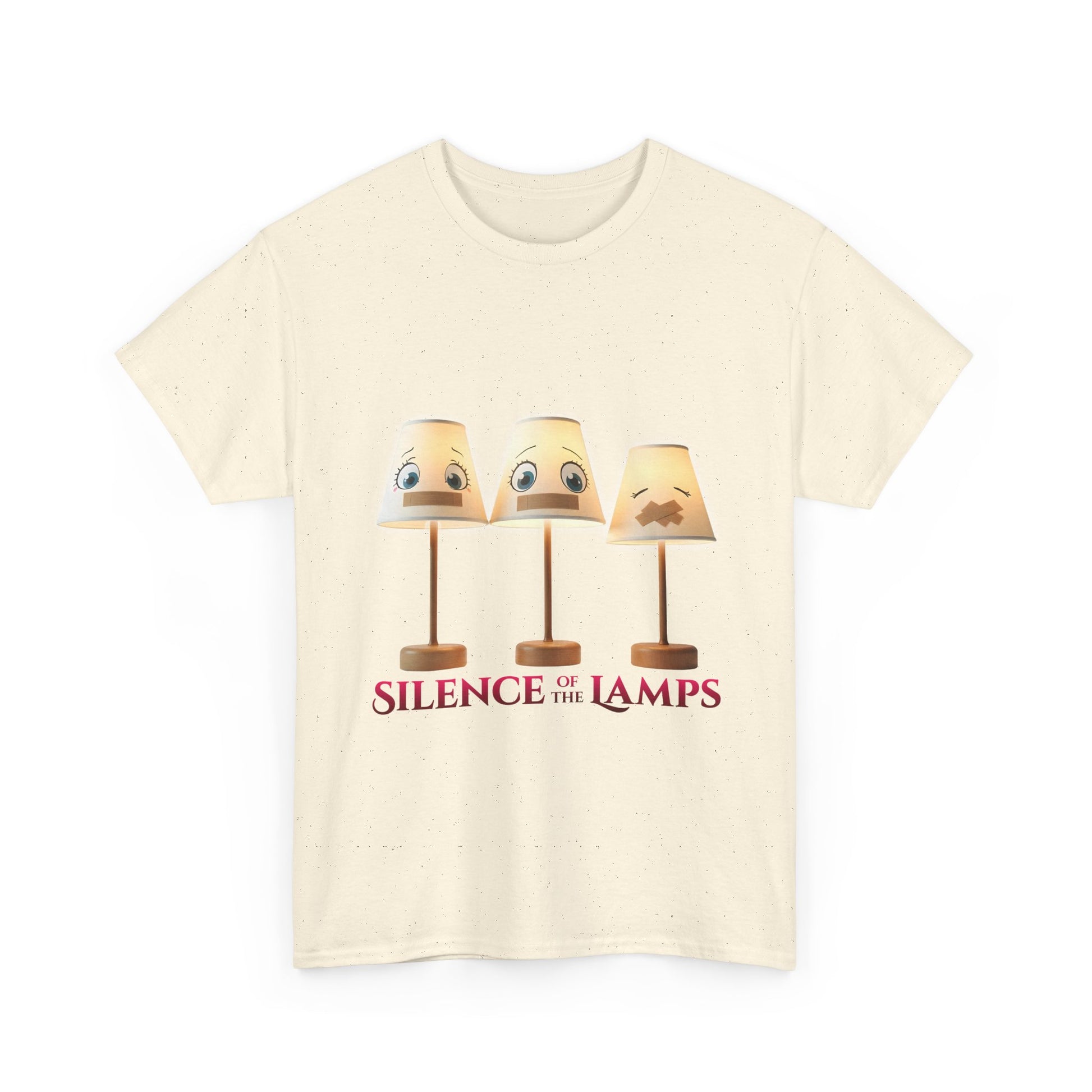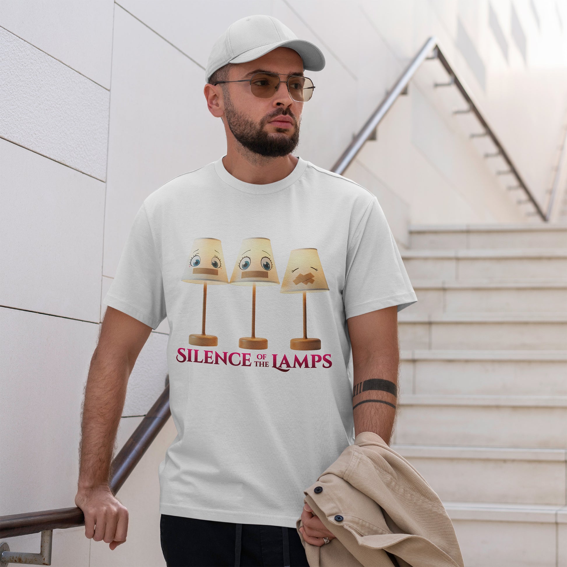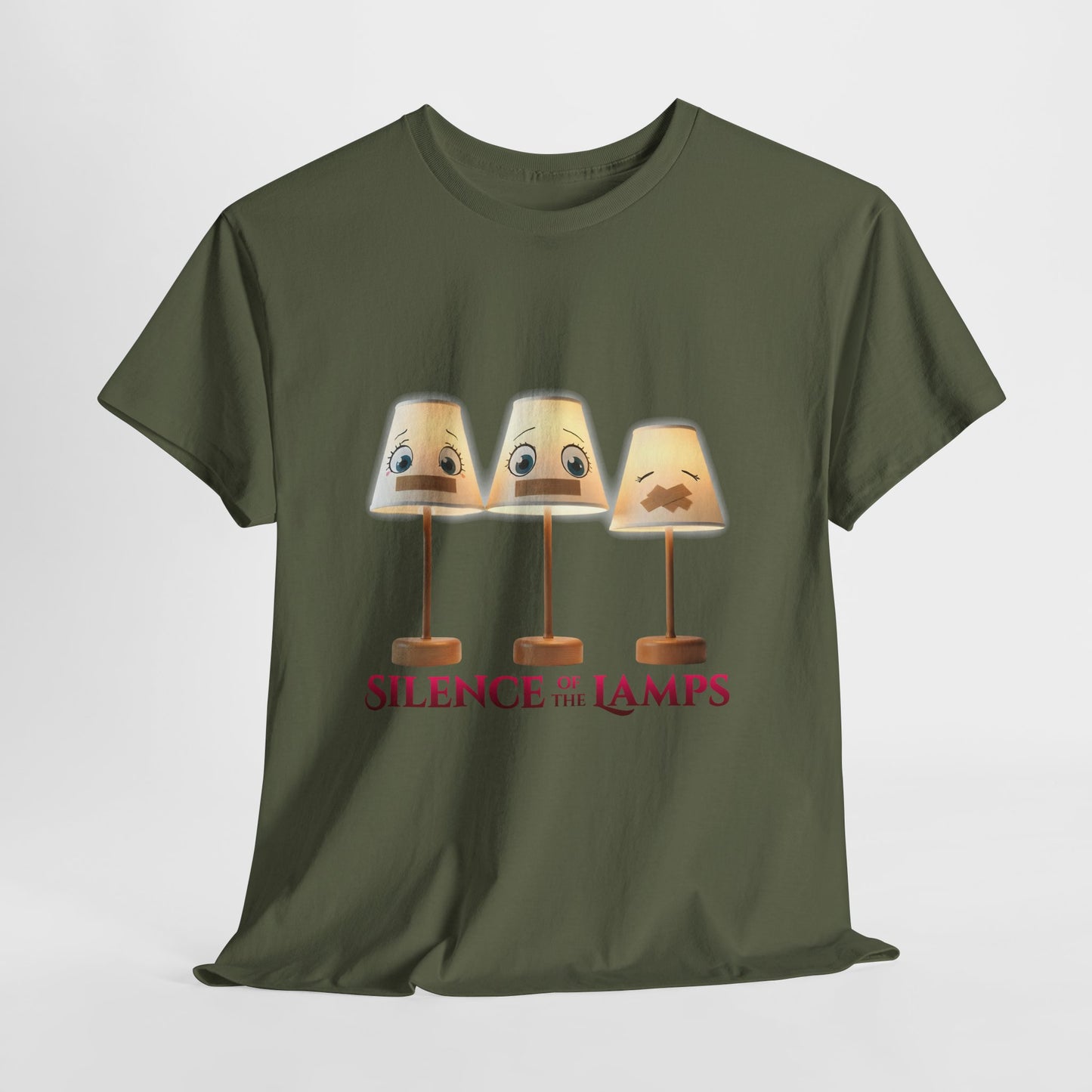 Koszulka z parodią horroru „Cisza lamp” z przerażającymi lampami