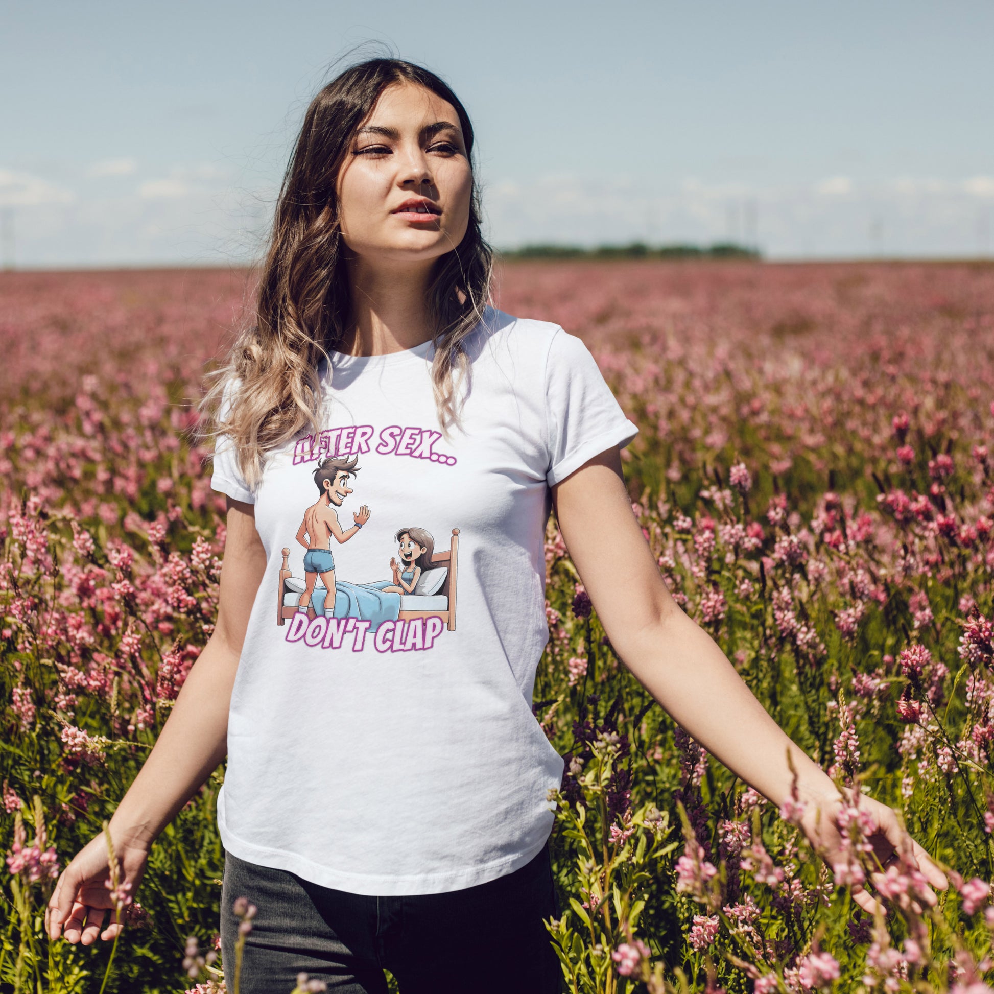 After Sex Don't Clap Shirt - Funny Cringe Cartoon Tee - Awkward Humor T-Shirt for Fans of Secondhand Embarrassment