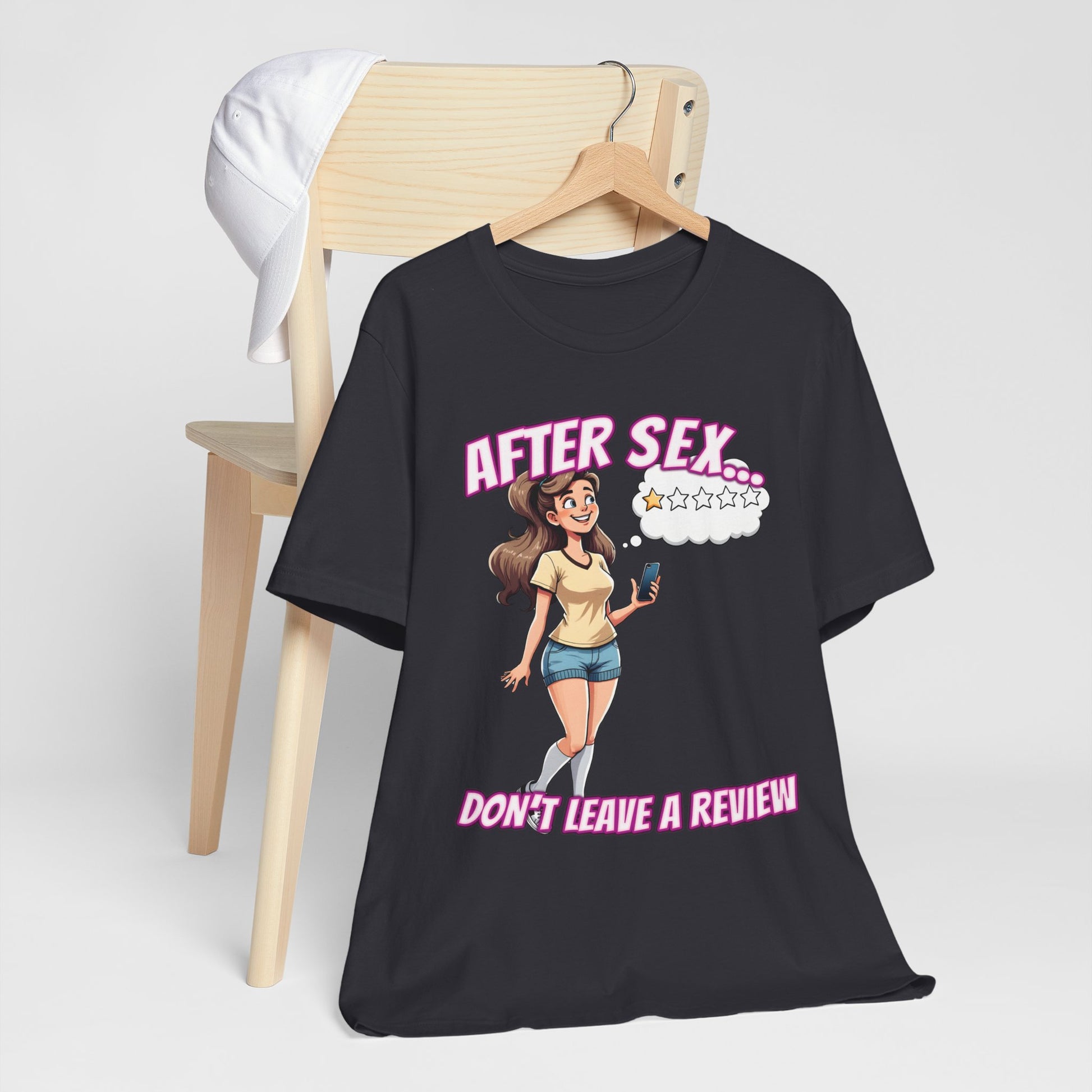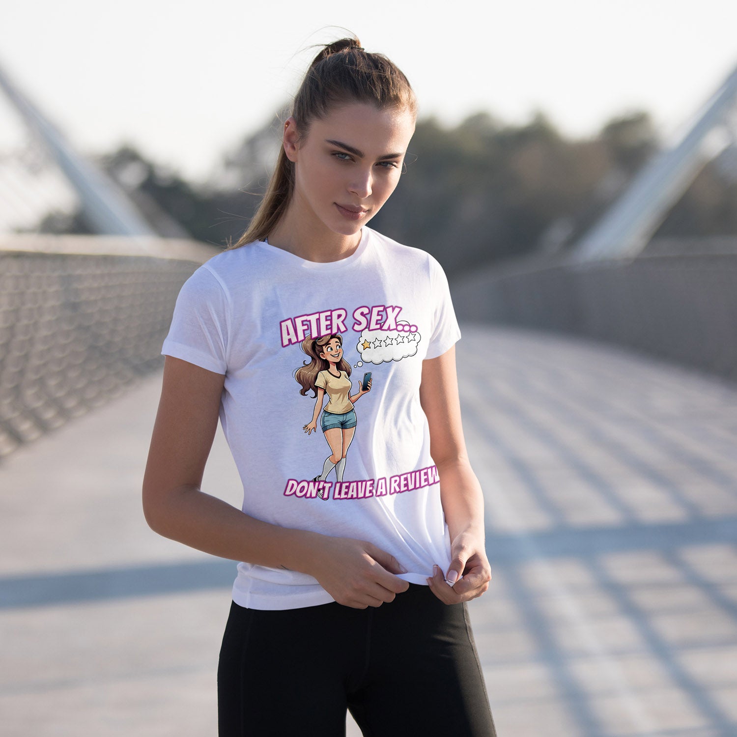 After Sex Don't Leave a Review Shirt - Funny Female Cartoon Tee - Sarcastic Post Hookup Humor T-Shirt for Women