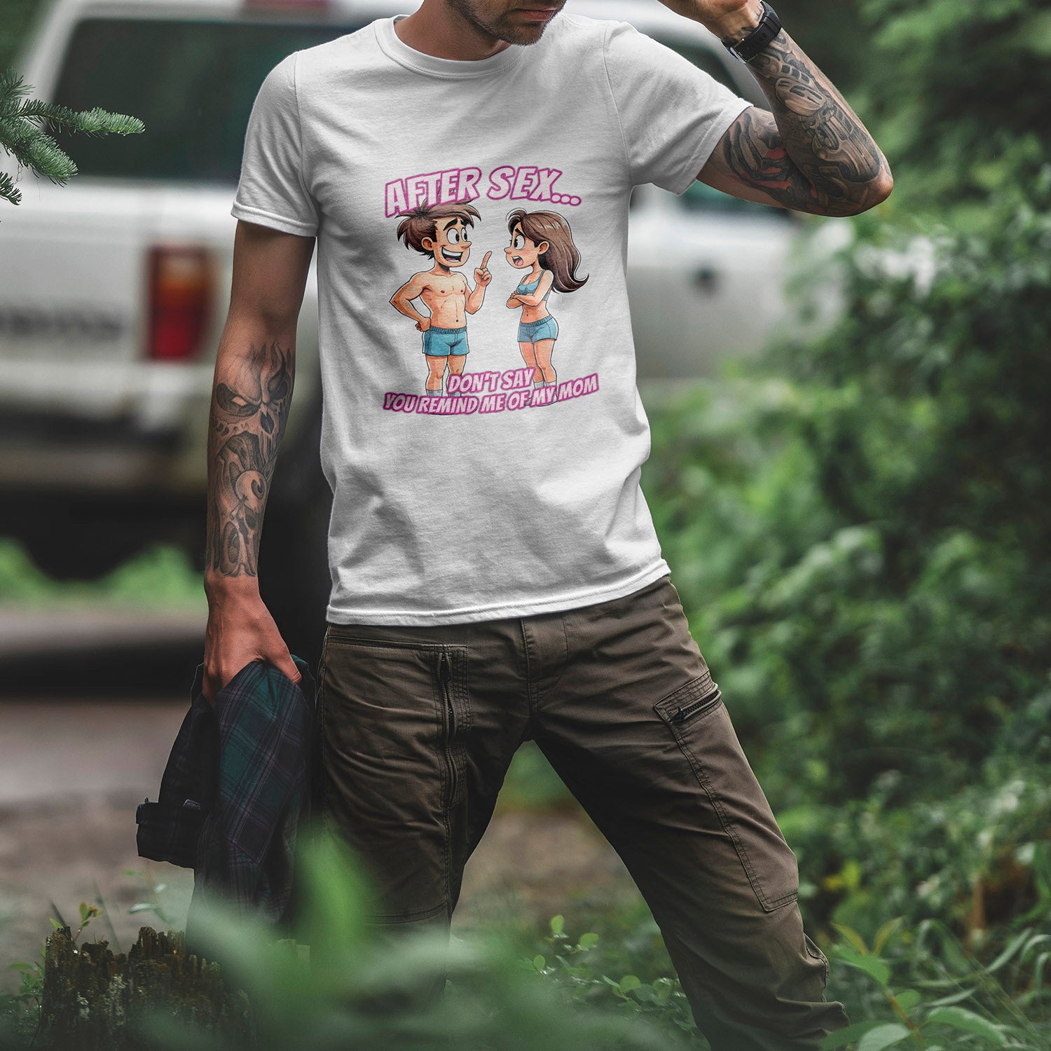 After Sex Don't Say You Remind Me of My Mom Shirt - Funny Cringe Cartoon Tee - Dark Dating Humor T-Shirt for Awkward Souls