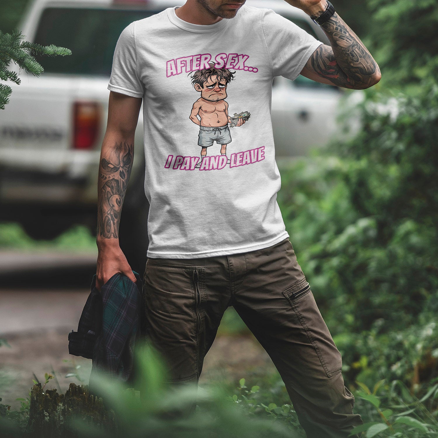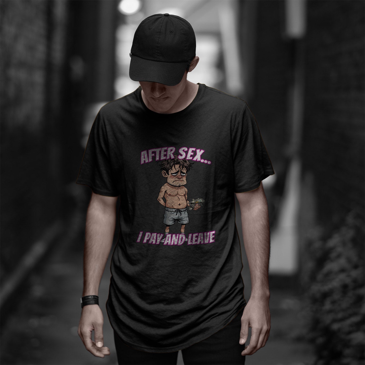 After Sex I Pay Shirt - Dark Humor Dating Tee - Funny Transactional Romance Cartoon T-Shirt