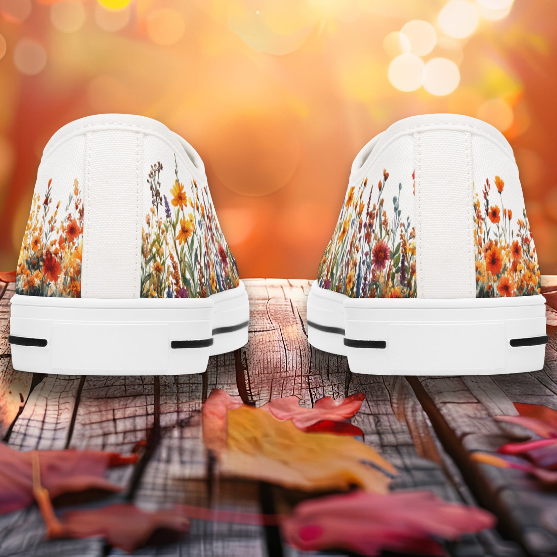 Autumn Flowers Womens Low Top Sneakers - Fall Floral Canvas Shoes with Memory Foam Insole, Botanical Print, Comfortable Casual Gift for Her