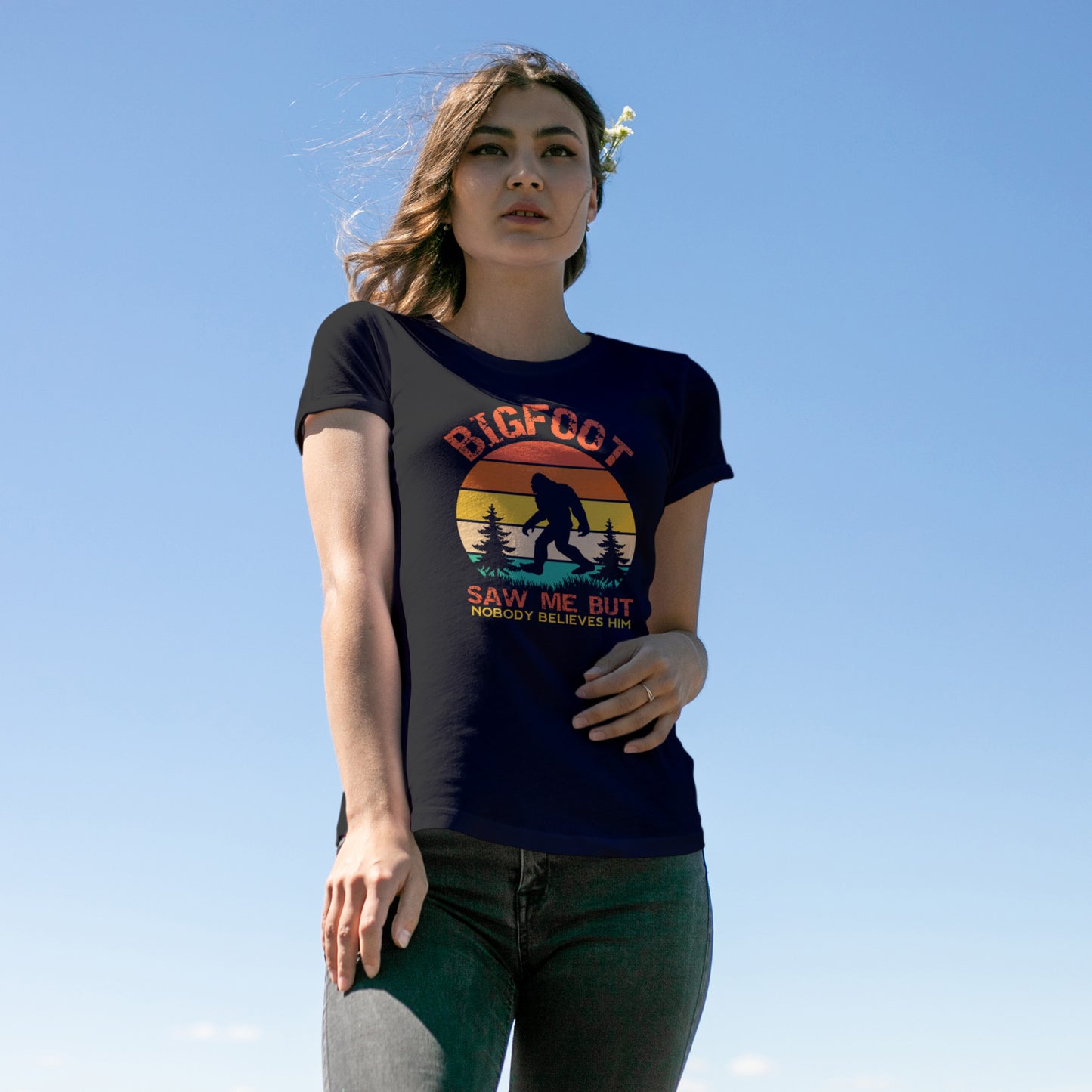 Bigfoot Saw Me But Nobody Believes Him T-Shirt - Retro Camping Cryptid Tee
