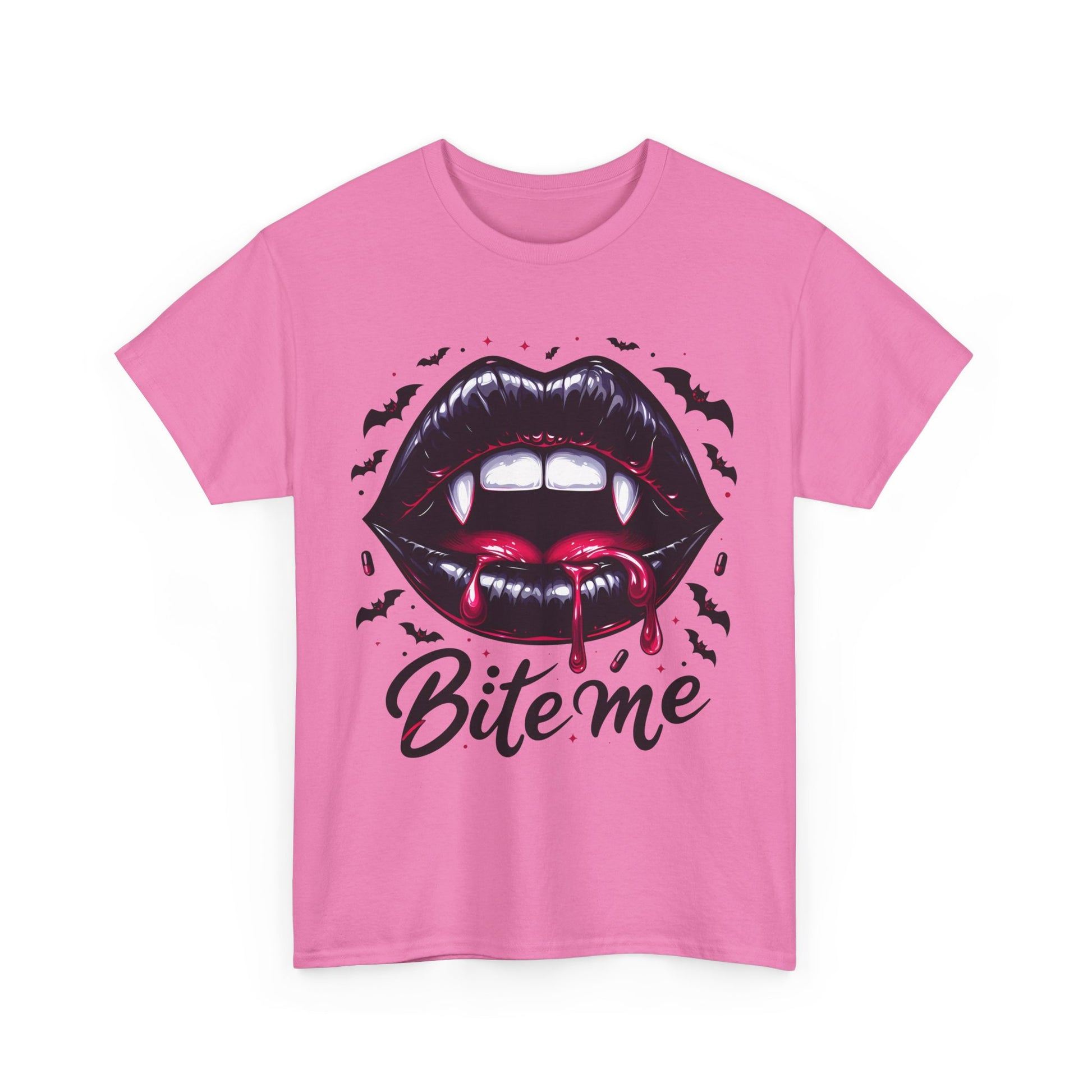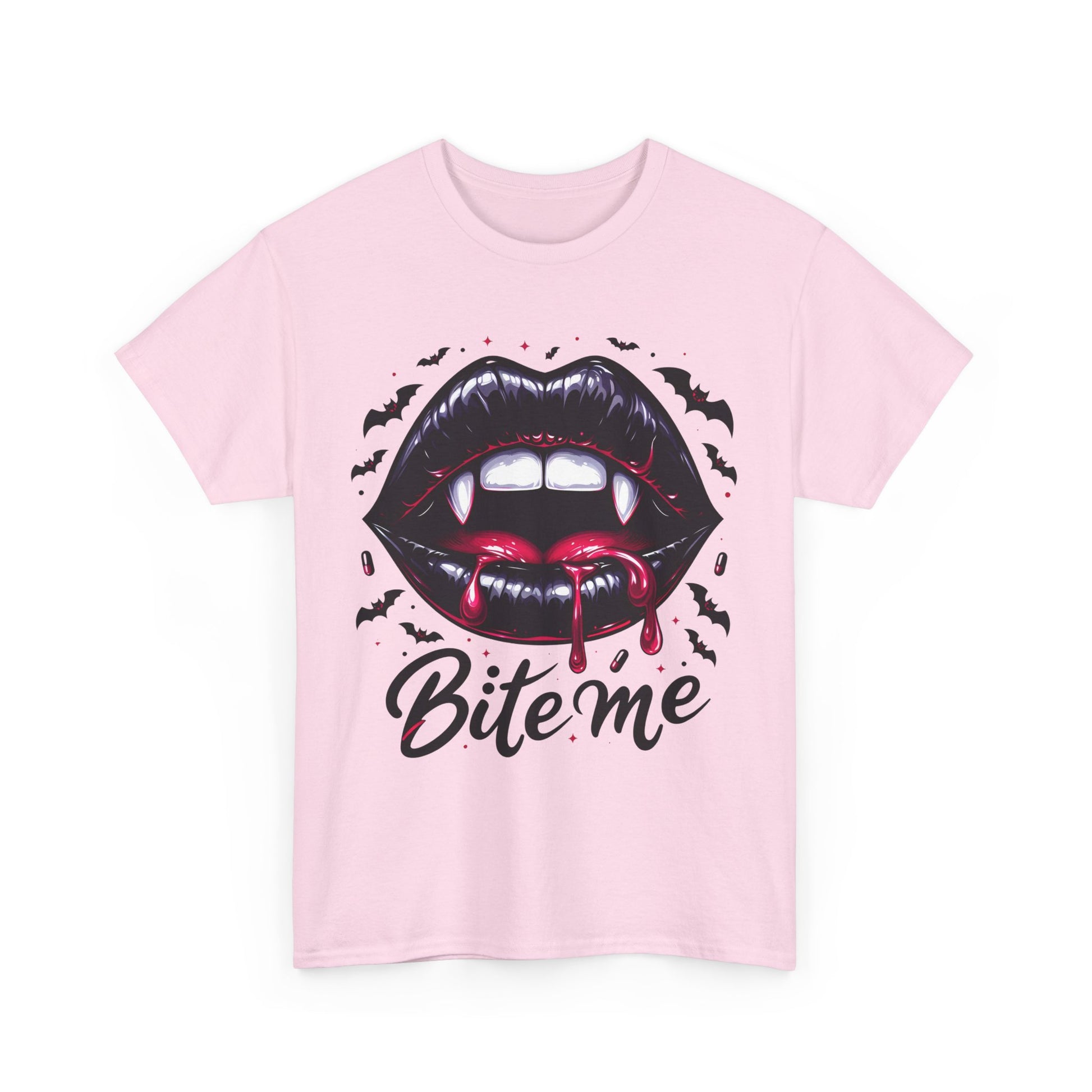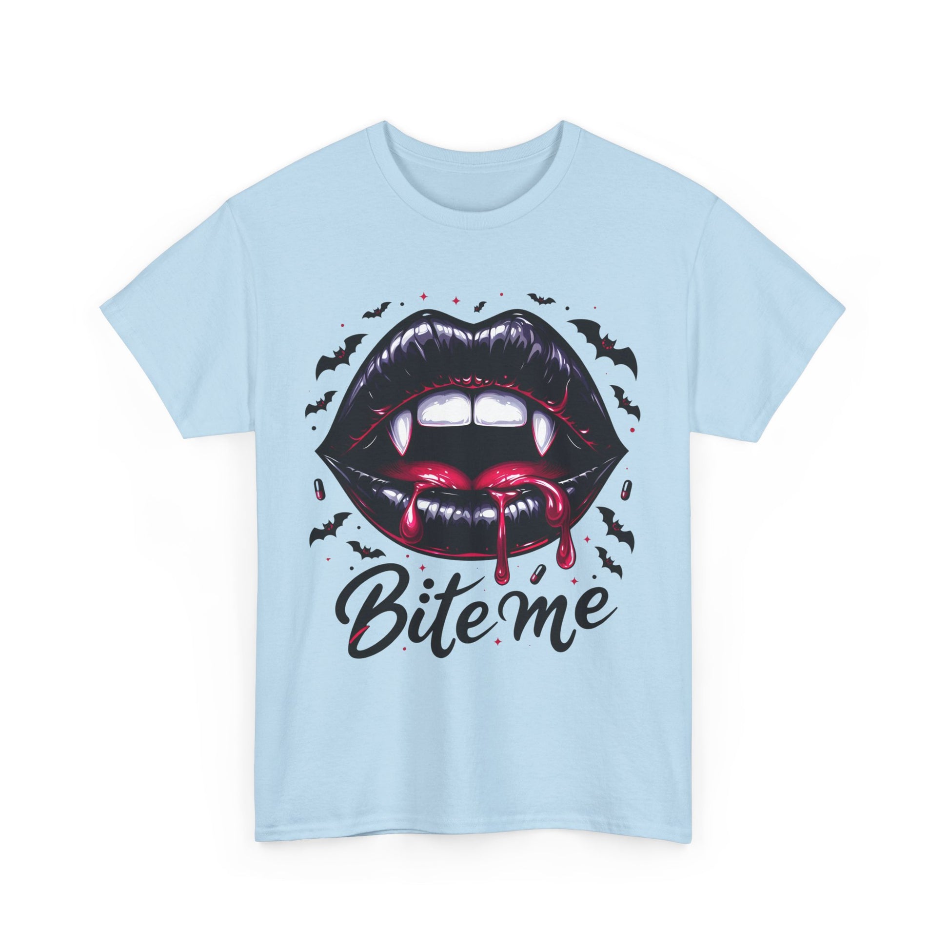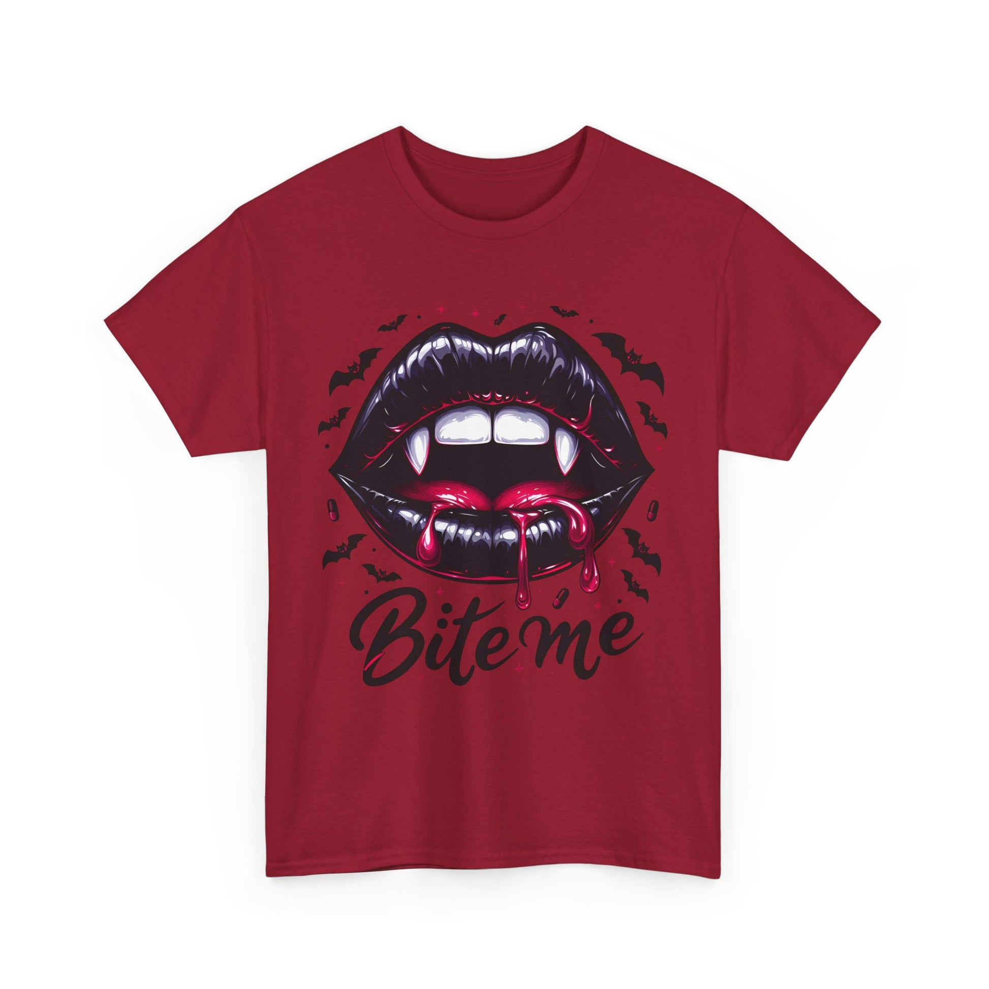 Bite Me Vampire Lips T-Shirt - Gothic Fangs & Bats Halloween Tee