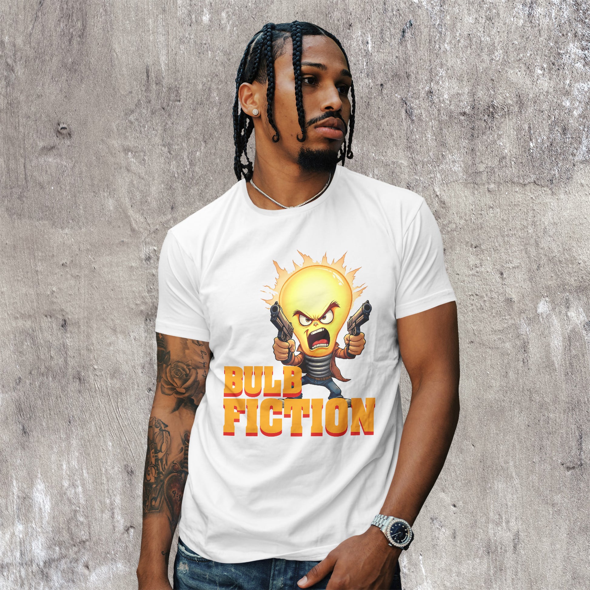 Bulb Fiction Shirt – Funny Movie Parody Tee, Pulp Fiction Lamp Cartoon t-Shirt
