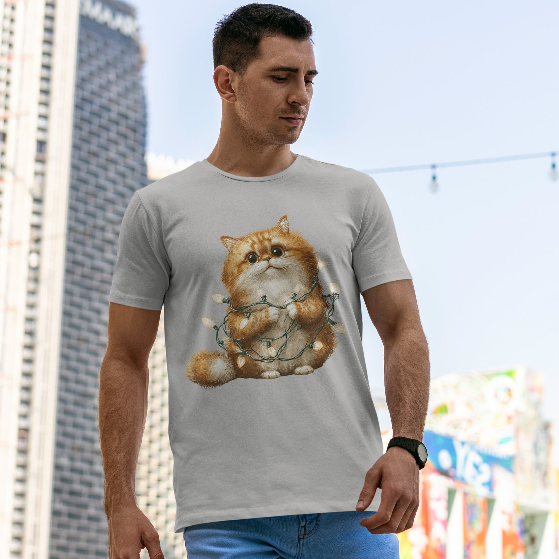 Christmas Lights Cat T-Shirt - Cute Kitty Tangled in Fairy Lights