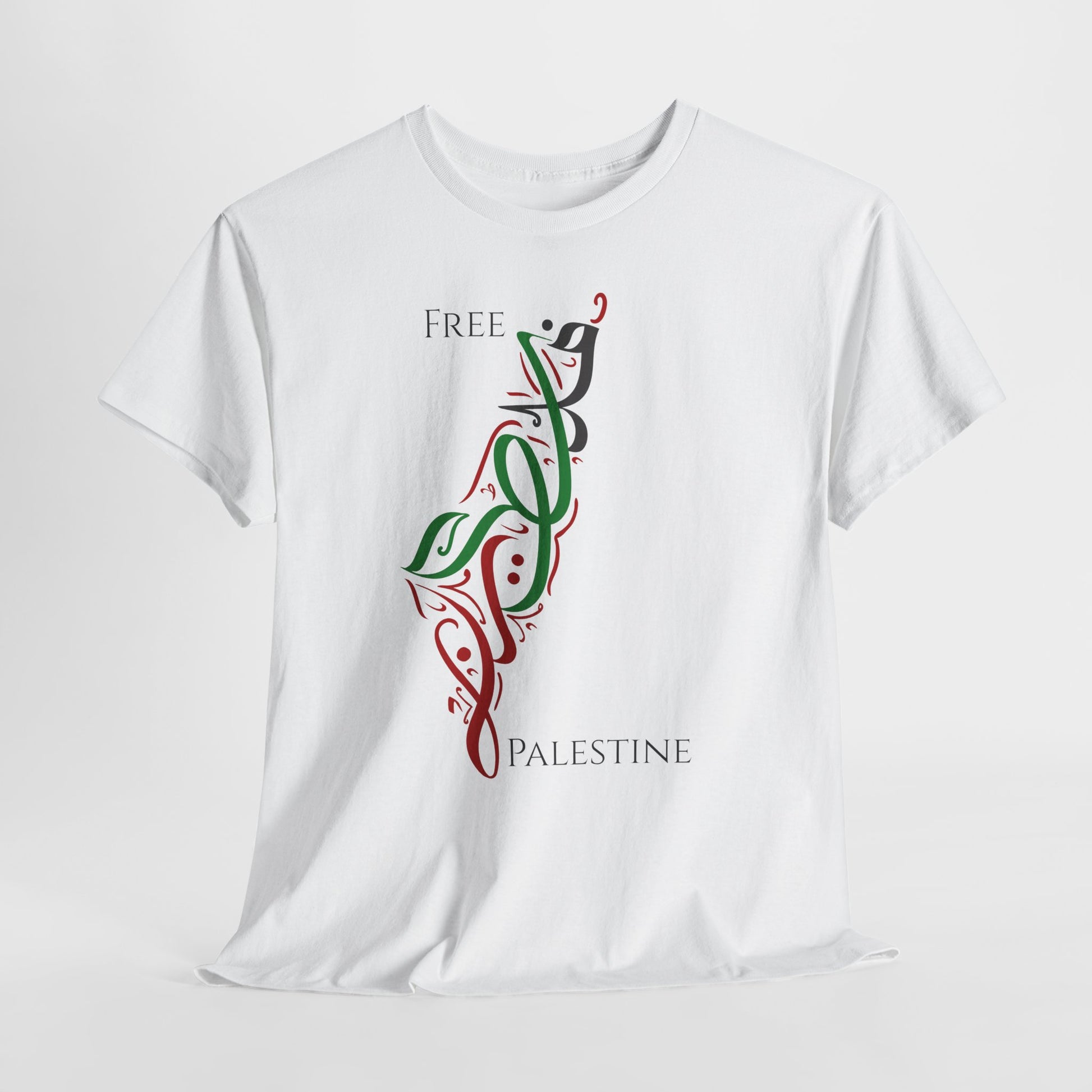 Free Palestine Map T-Shirt - Artistic Palestinian Calligraphy Solidarity Tee