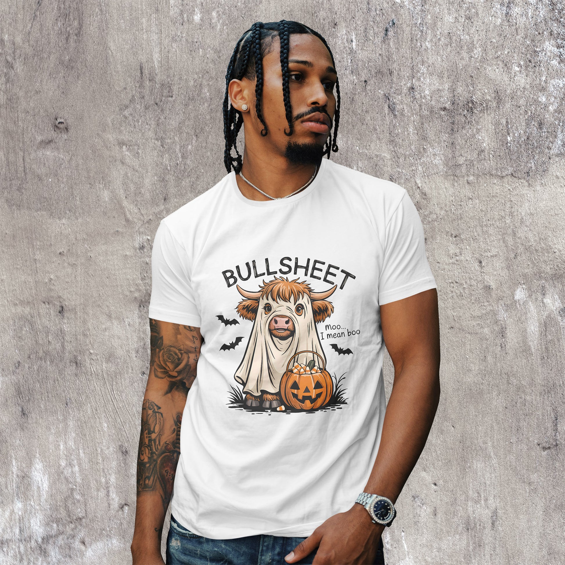 🐮🎃 Funny Highland Cow - Ghost Costume Halloween T-Shirt