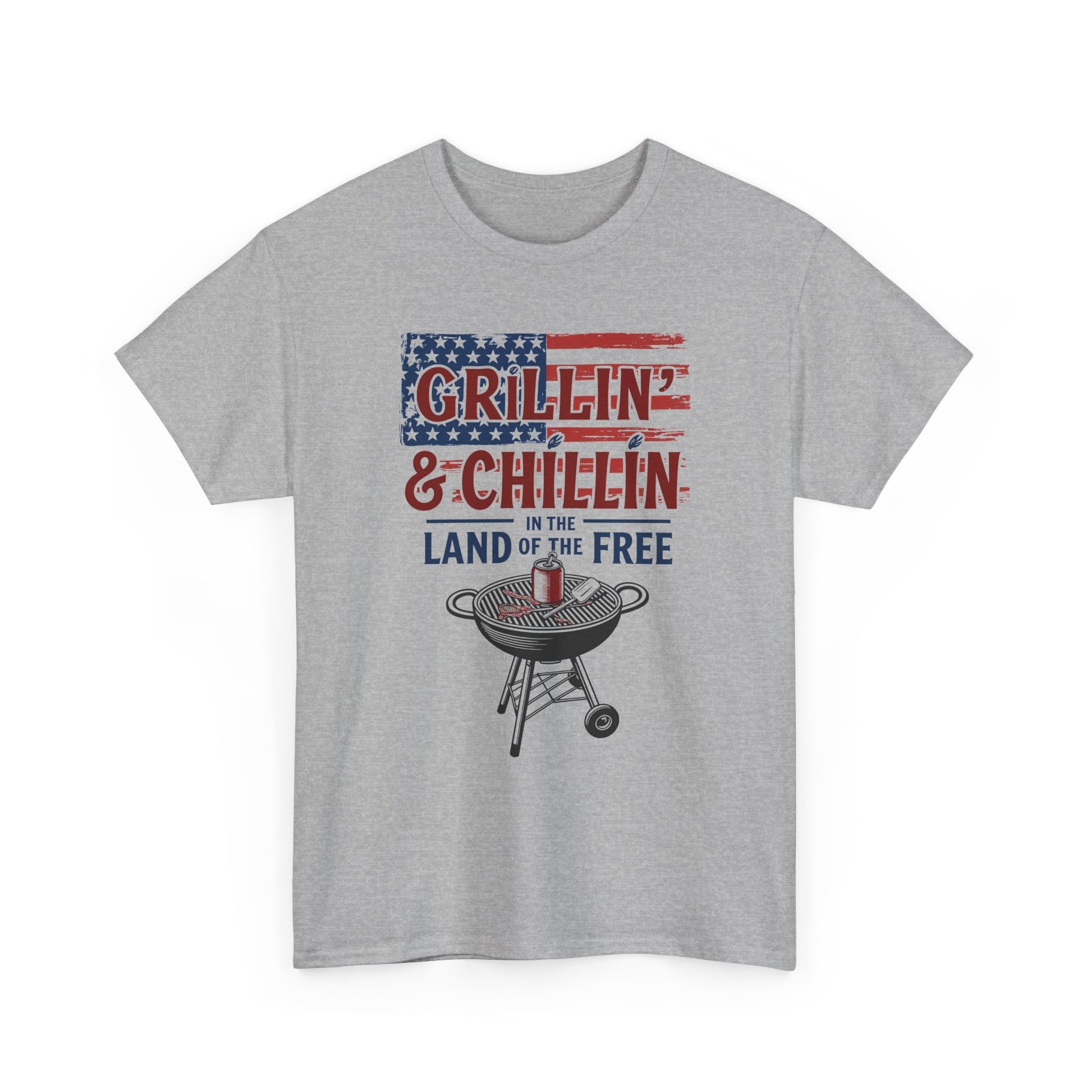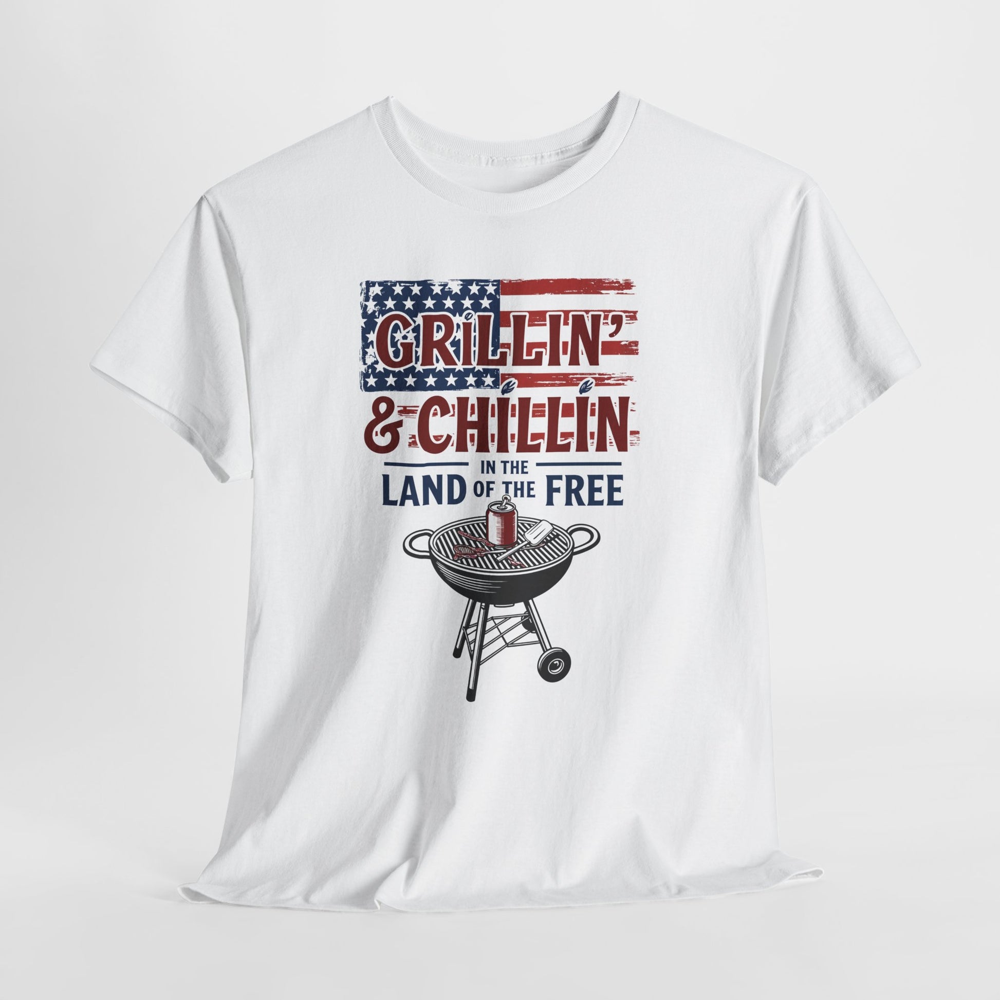 Grillin and Chillin T-Shirt – Funny Patriotic BBQ 4th of July Tee