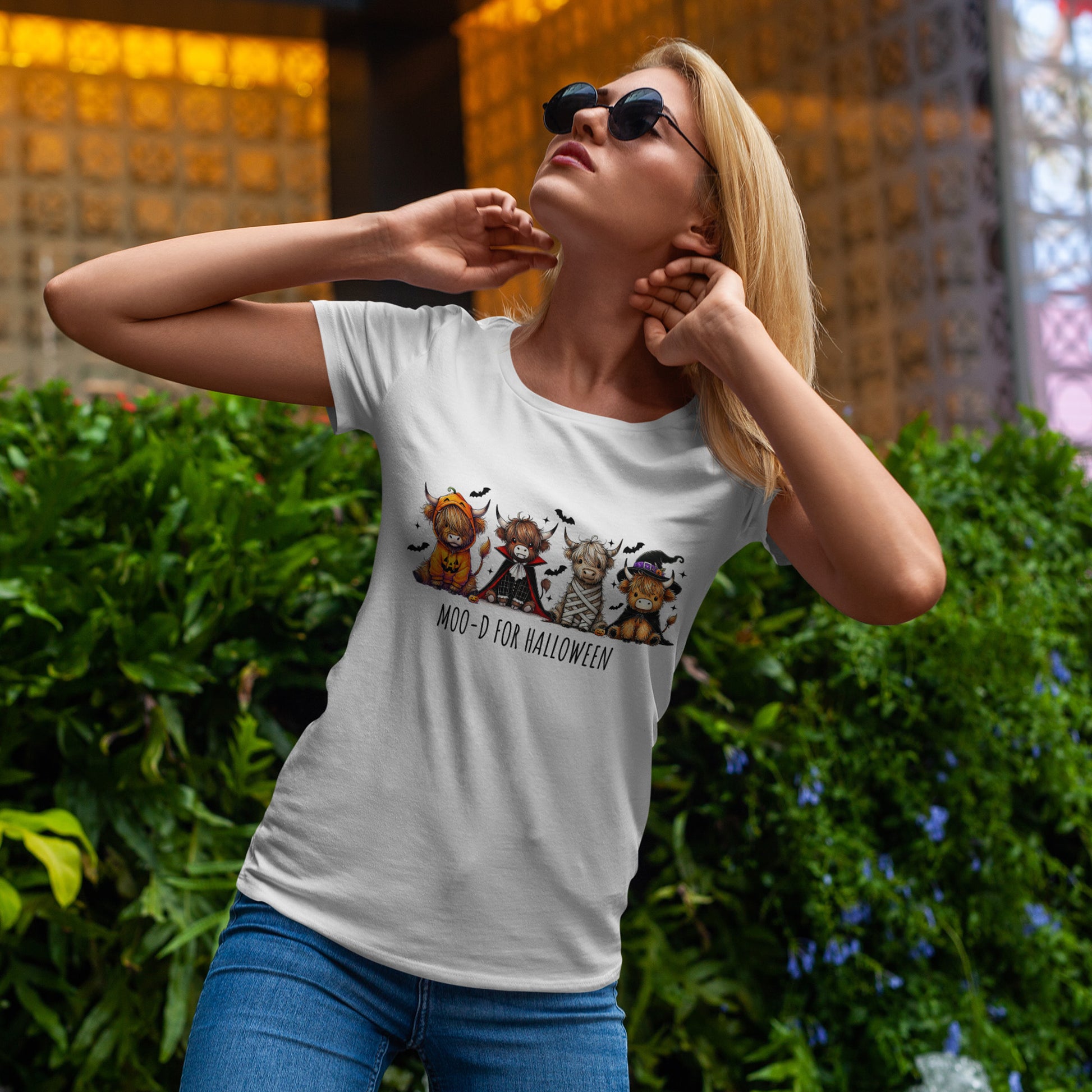 Highland Cow Halloween T-Shirt – Cute Spooky Cows in Costumes