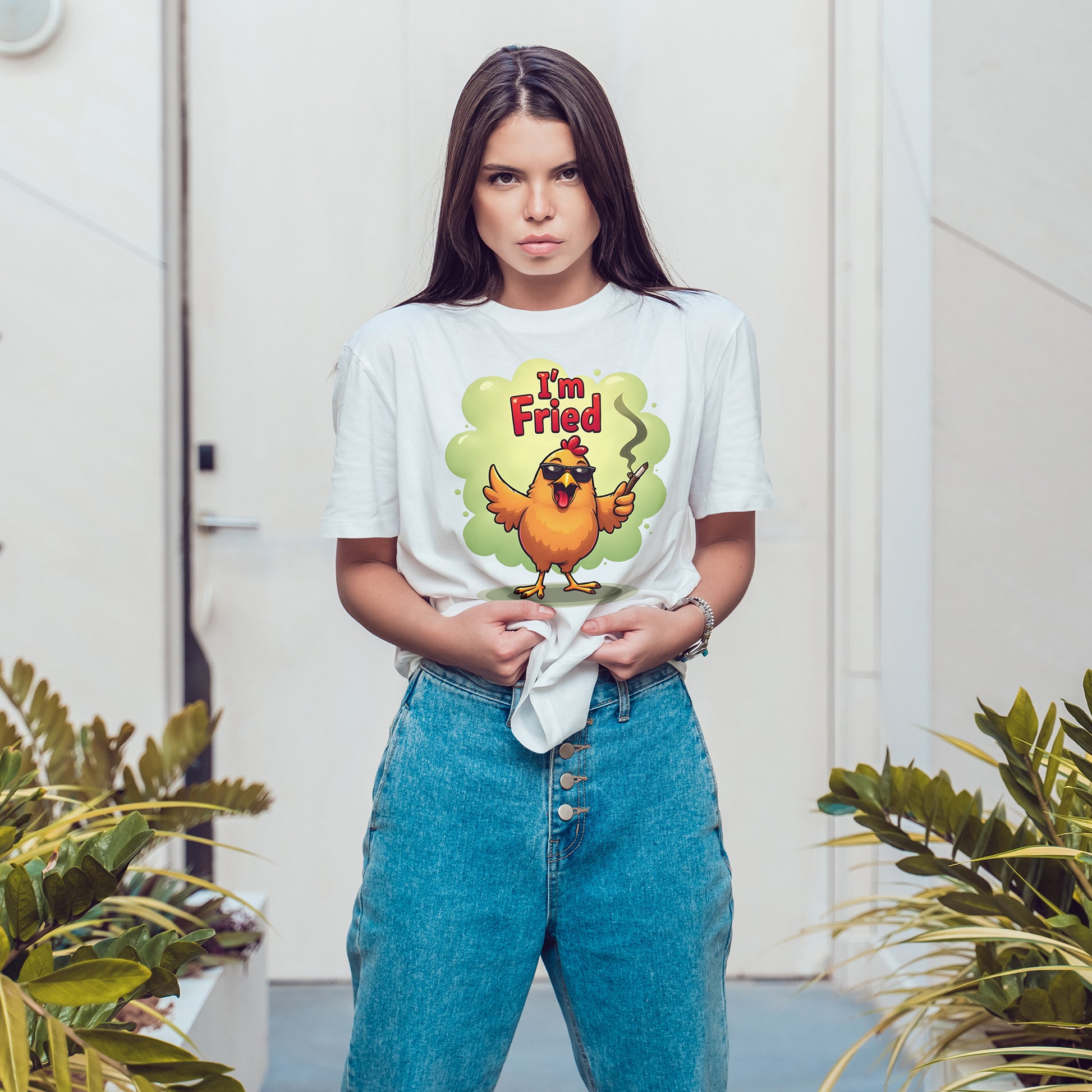 <p>When the munchies hit, this chilled chicken delivers. A cheeky cartoon bird in shades with a smoky vibe and the line “I'm Fried” brings instant laughs for laid-back weekends, parties and post-snack naps.</p>