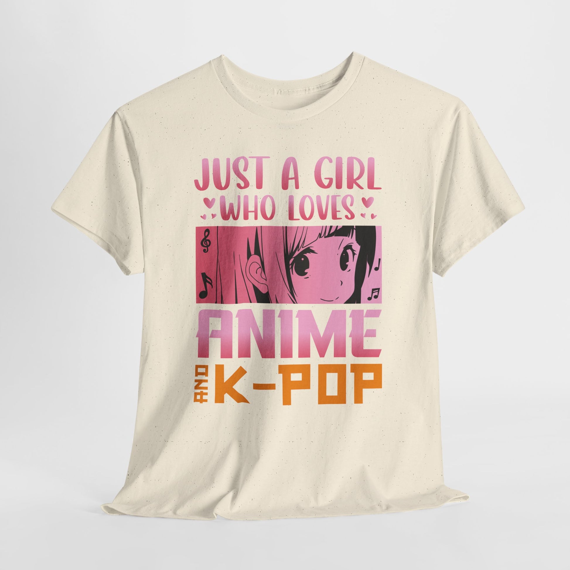 💖🎶 Just a Girl Who Loves Anime and K-Pop Shirt - Kawaii Manga Tee