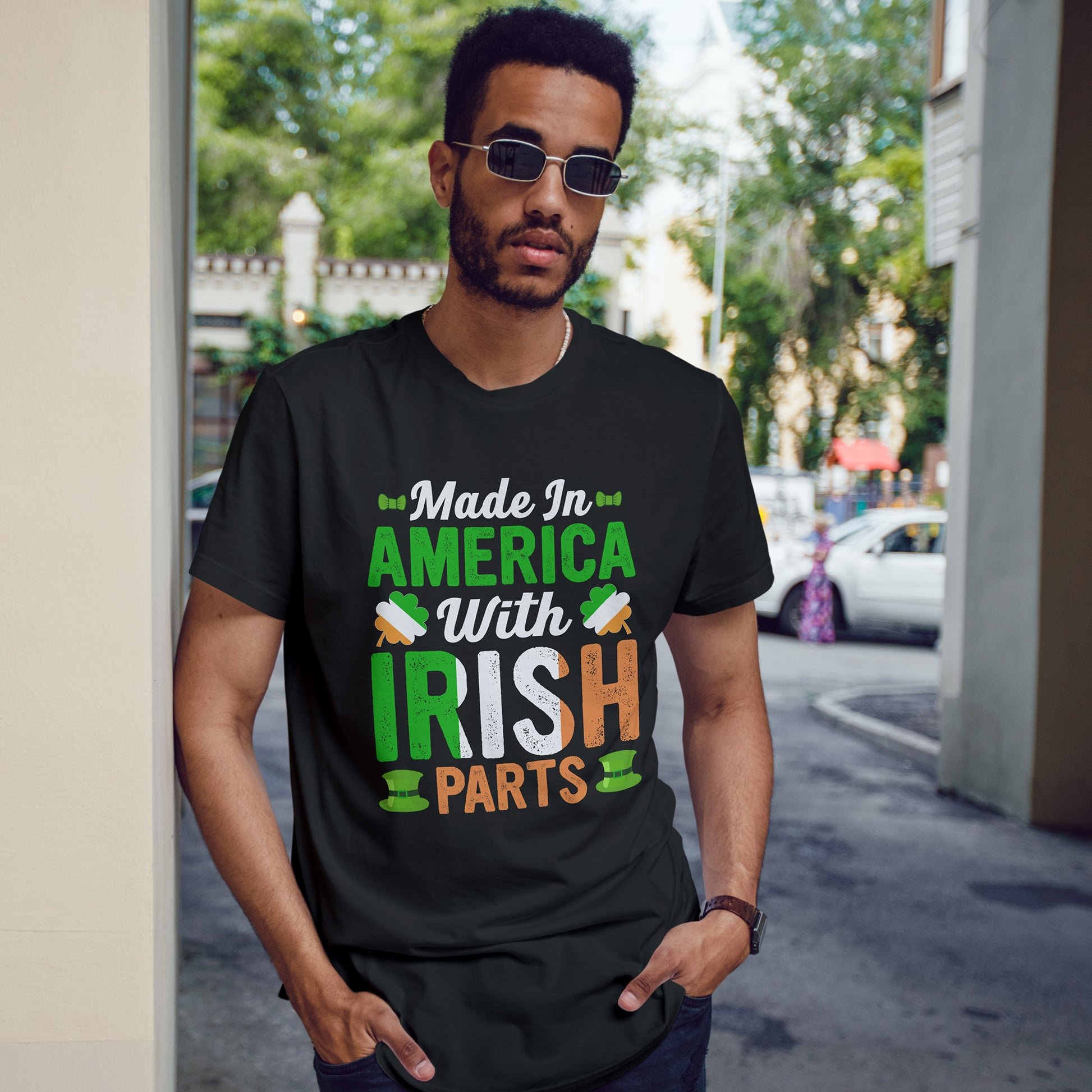 Dual citizenship… in vibes. This bold “Made in America with Irish Parts” tee mixes shamrocks, tricolor Irish lettering and USA pride. Big, high-contrast typography reads clearly in thumbnails and gets instant smiles at parades, pubs and family photos.