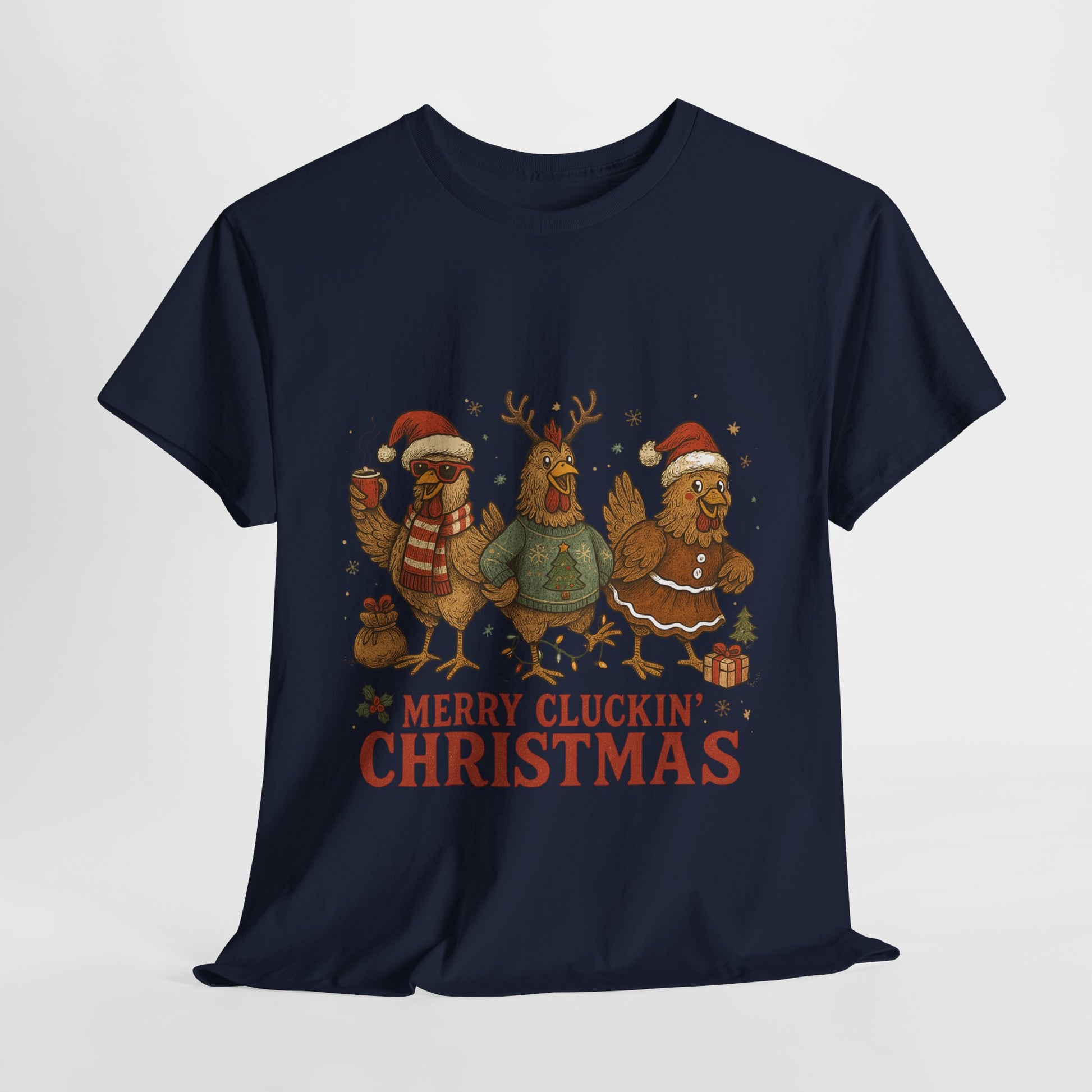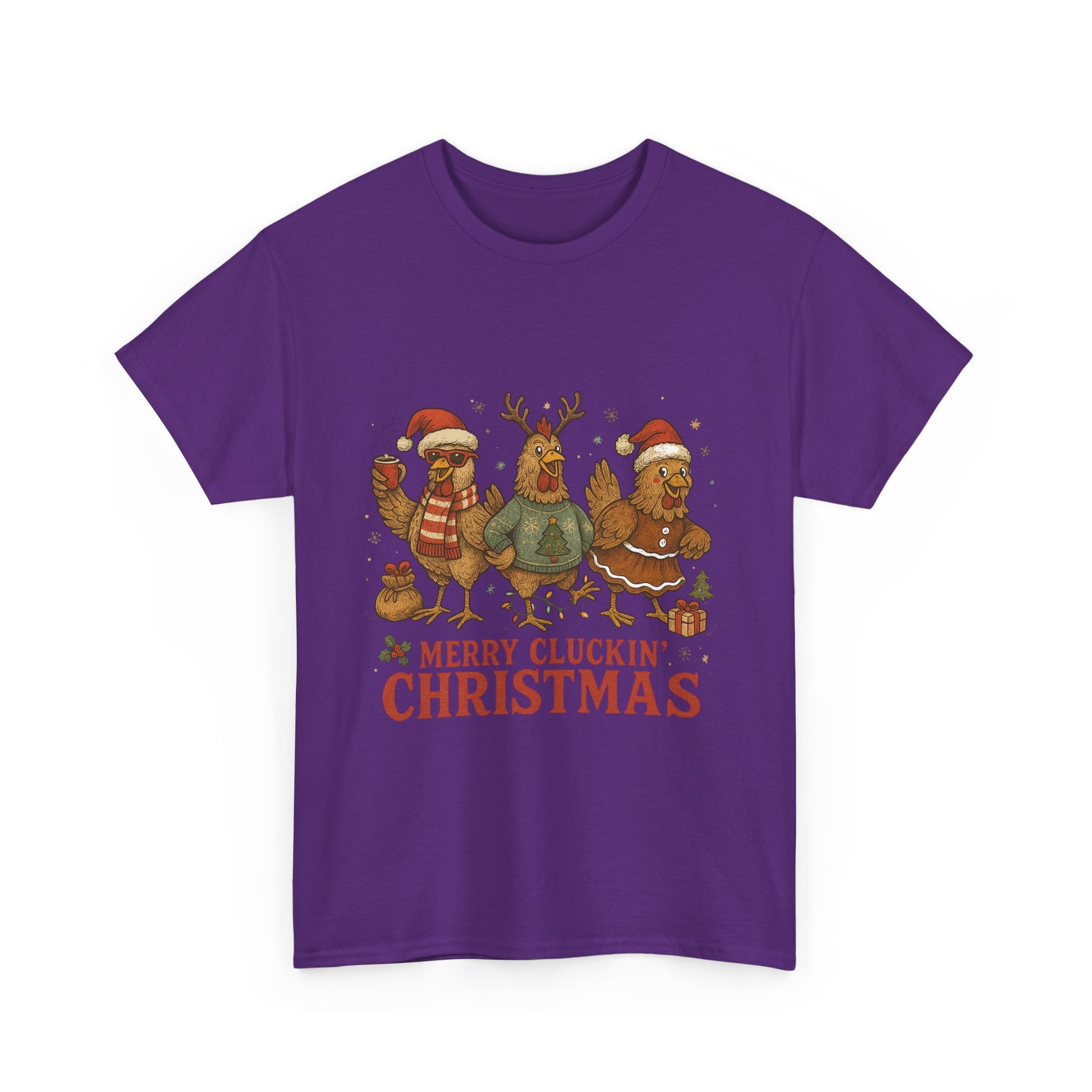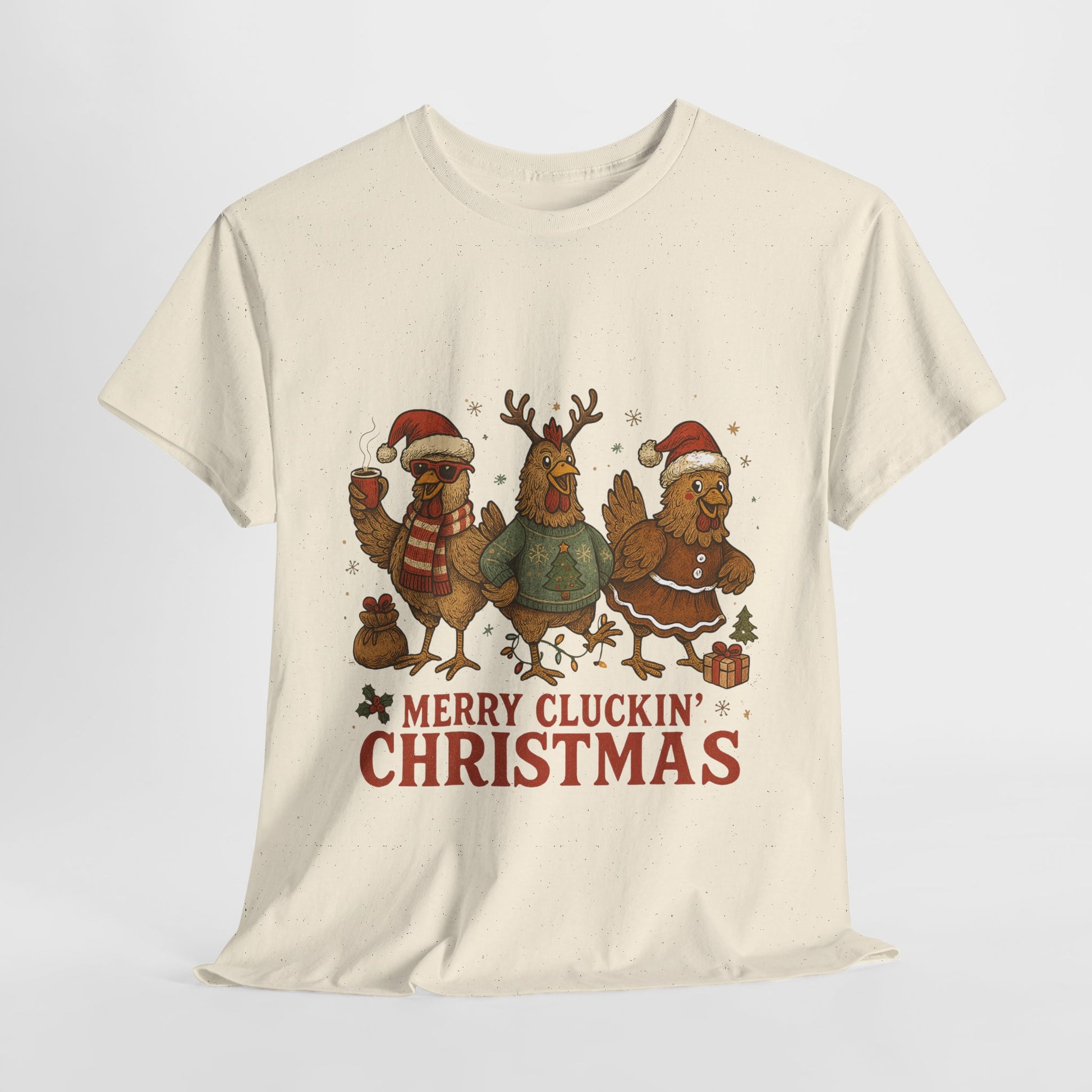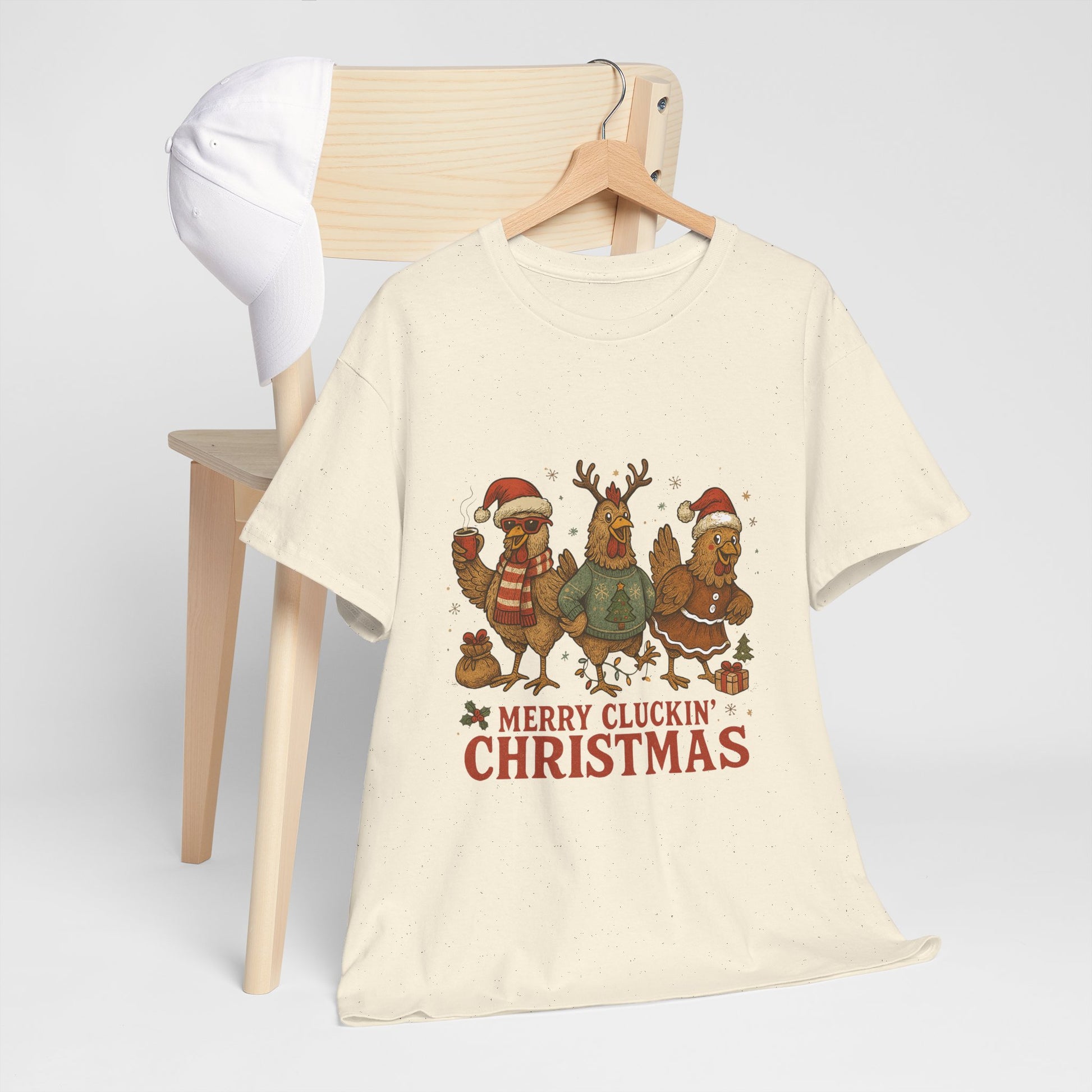 Merry Cluckin' Christmas Chicken T-Shirt - Funny Holiday Farm Tee