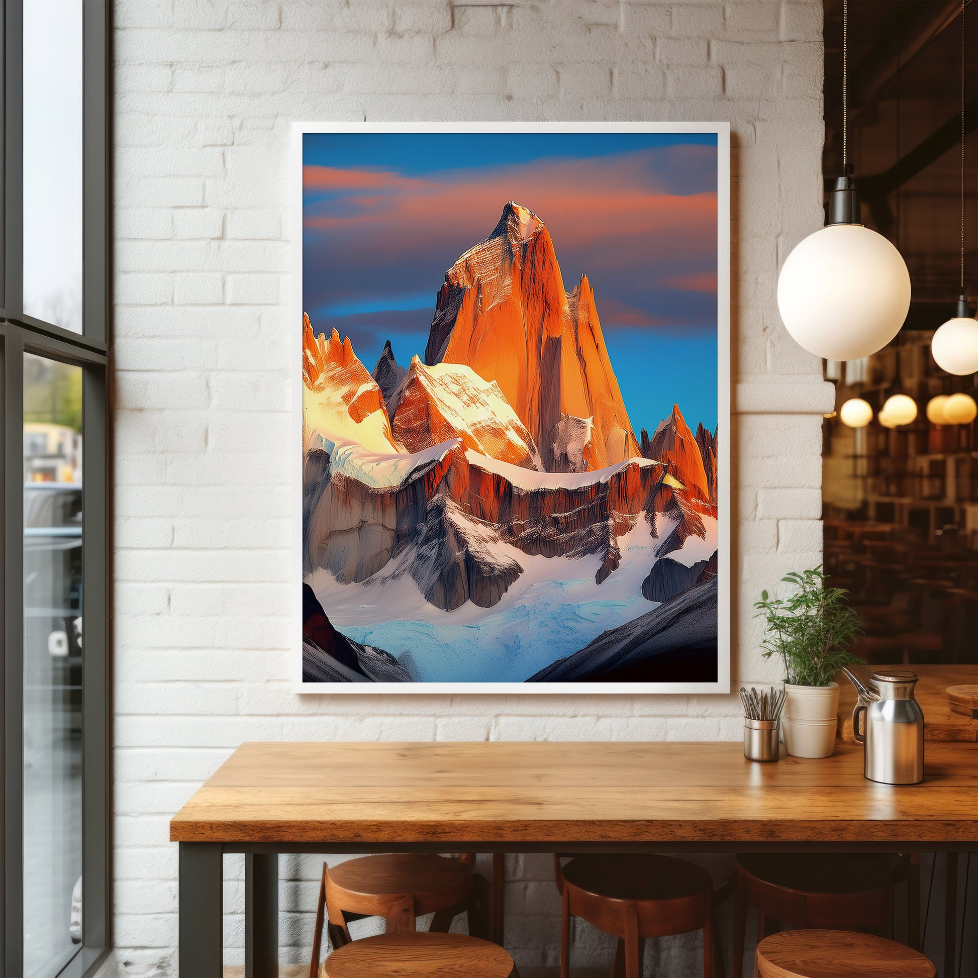 ⛰️ Fiery alpenglow on razor-edged granite - bold Patagonia energy for your walls.