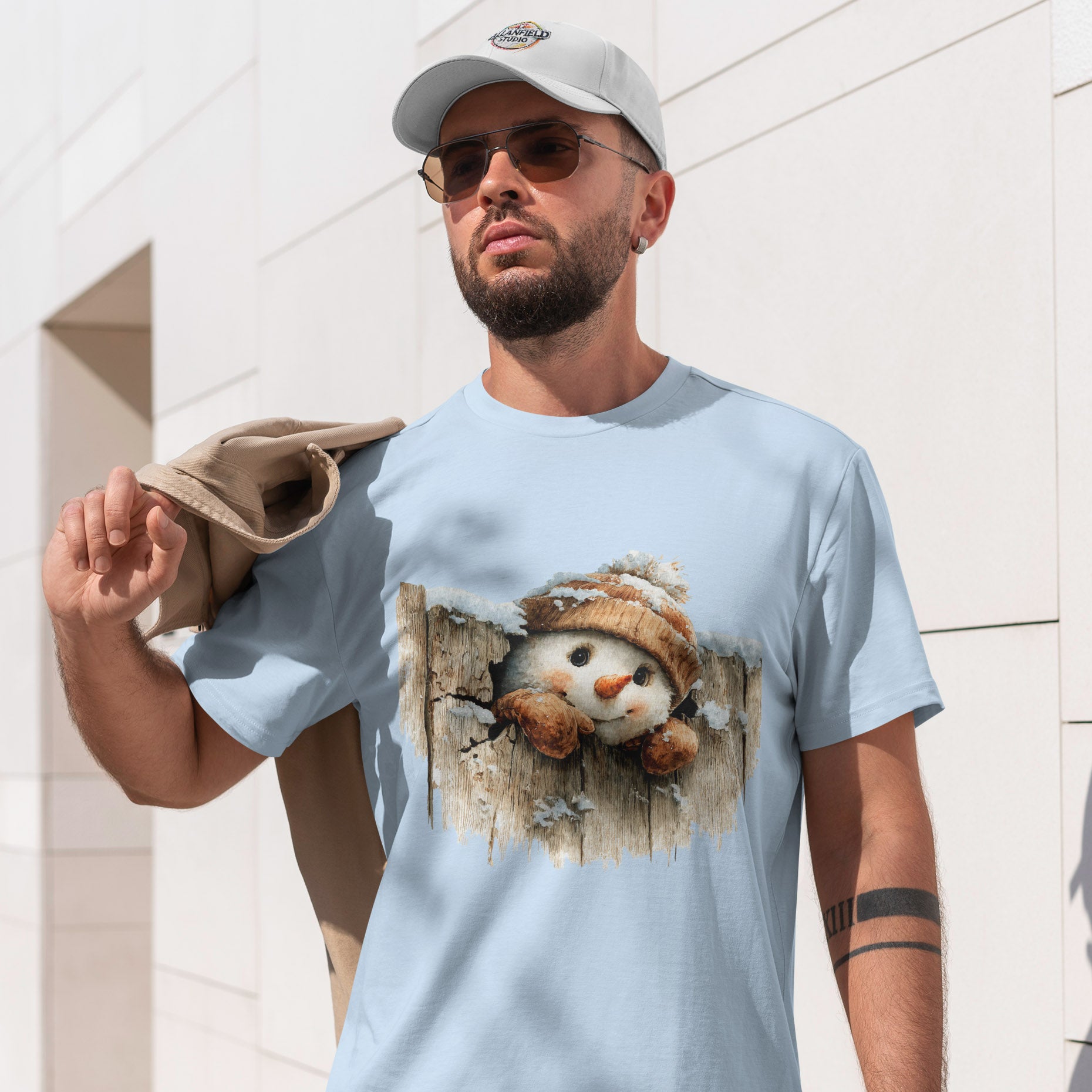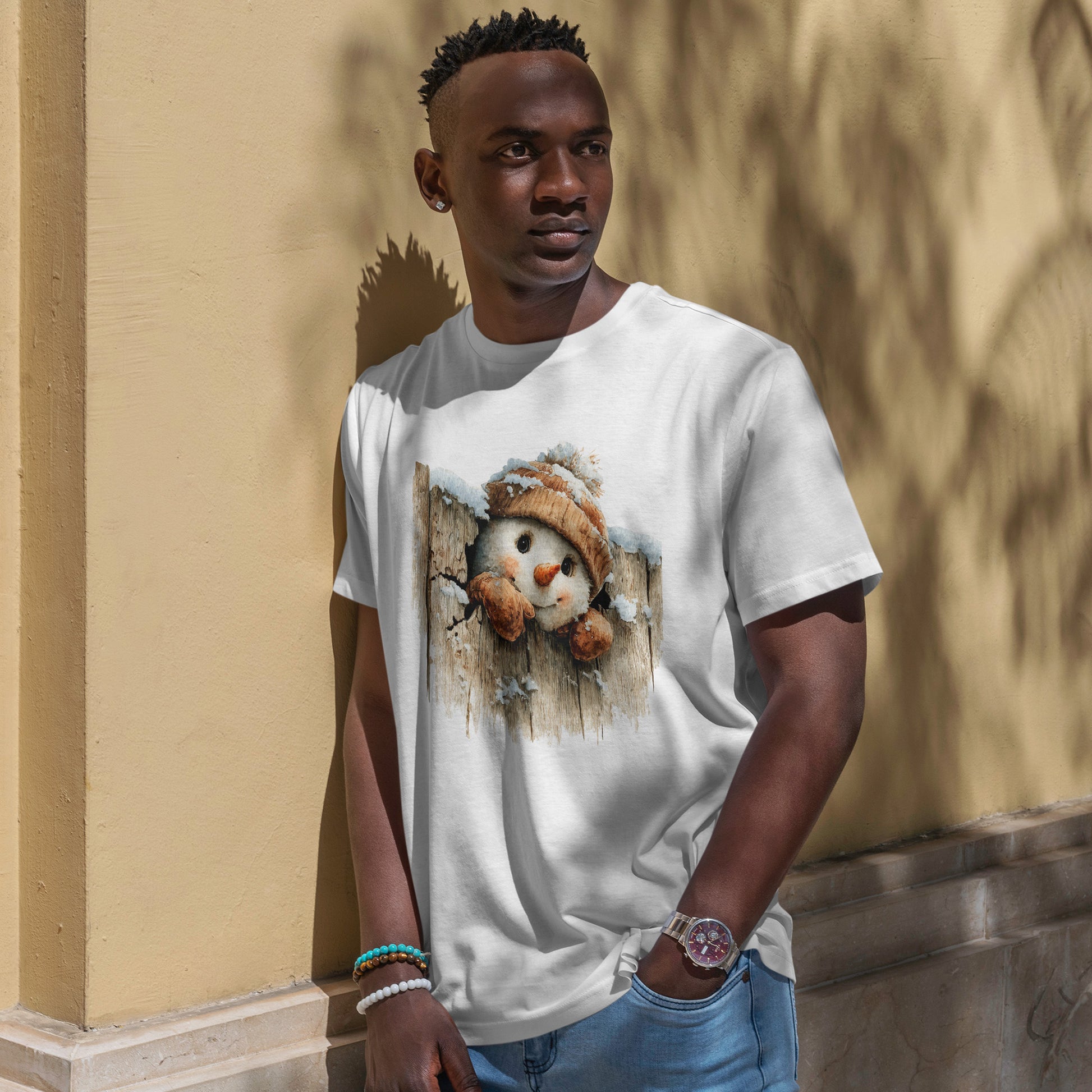 ⛄🧶 Peeking Snowman Beanie Christmas T-Shirt