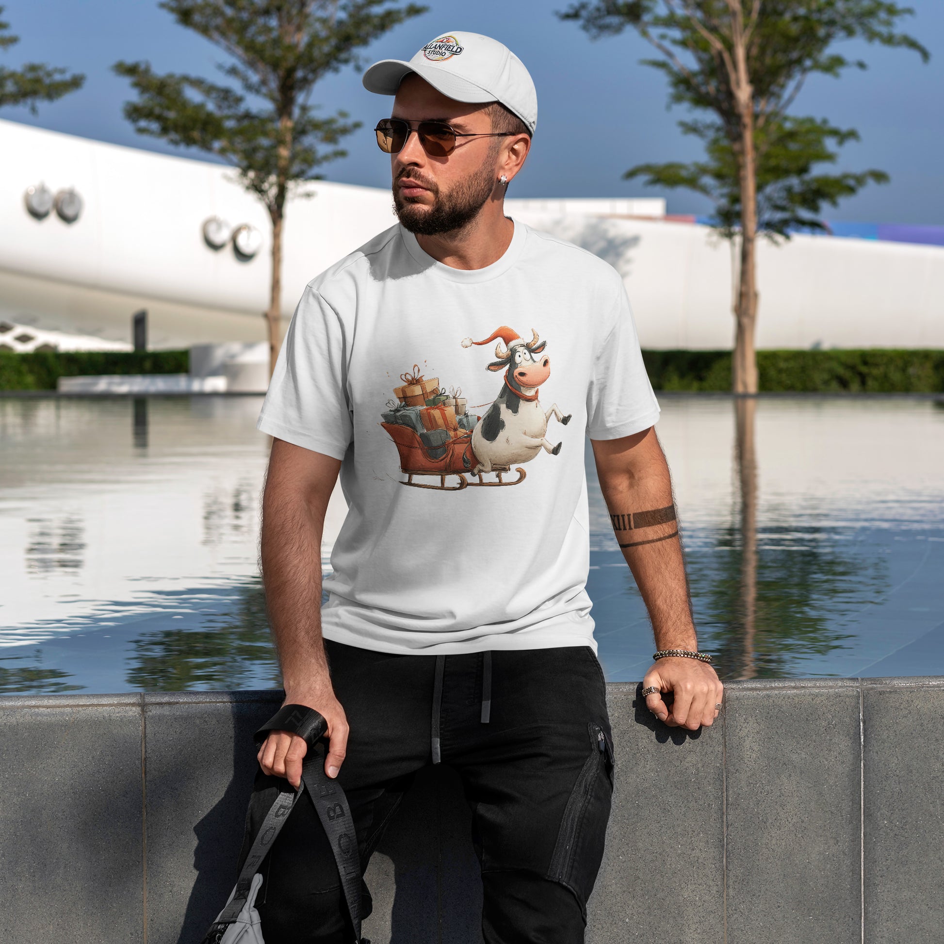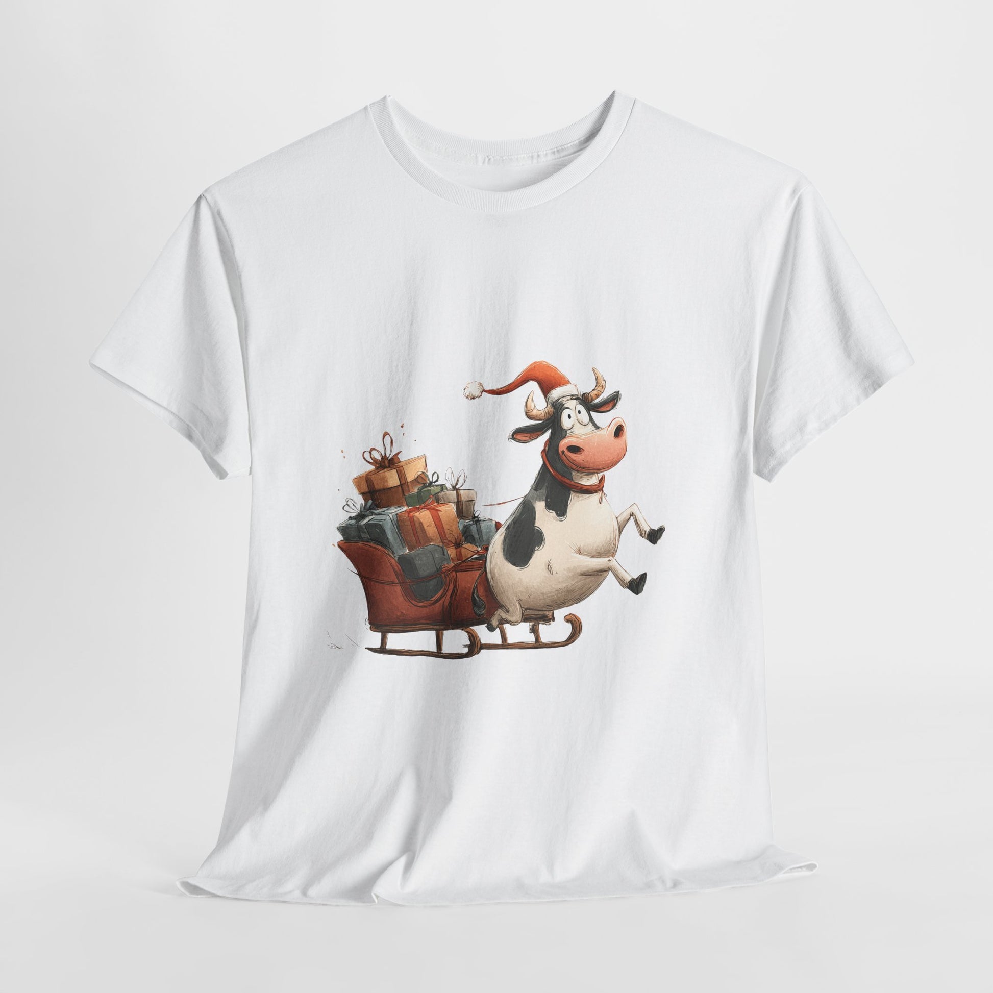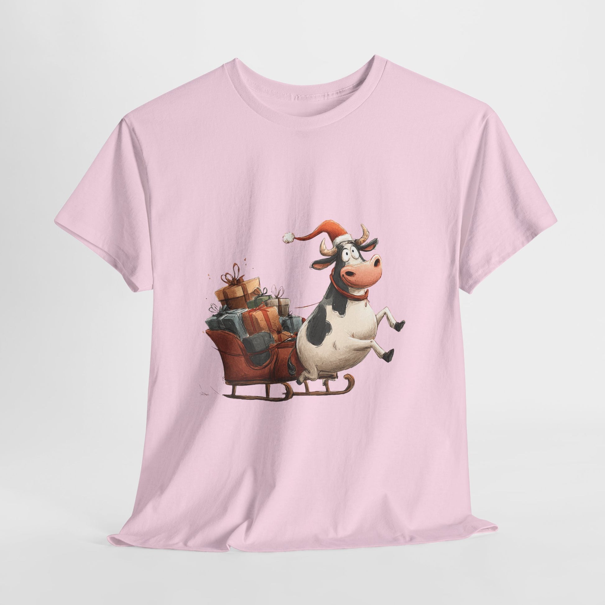 🎄🐮 Santa Cow Sleigh Christmas T-Shirt