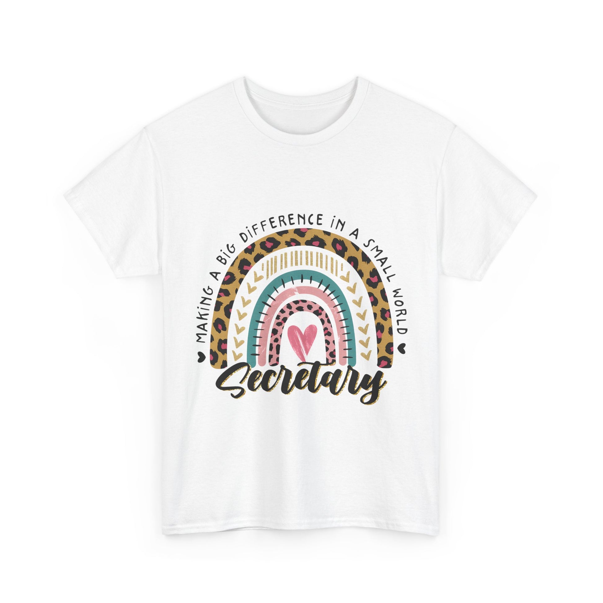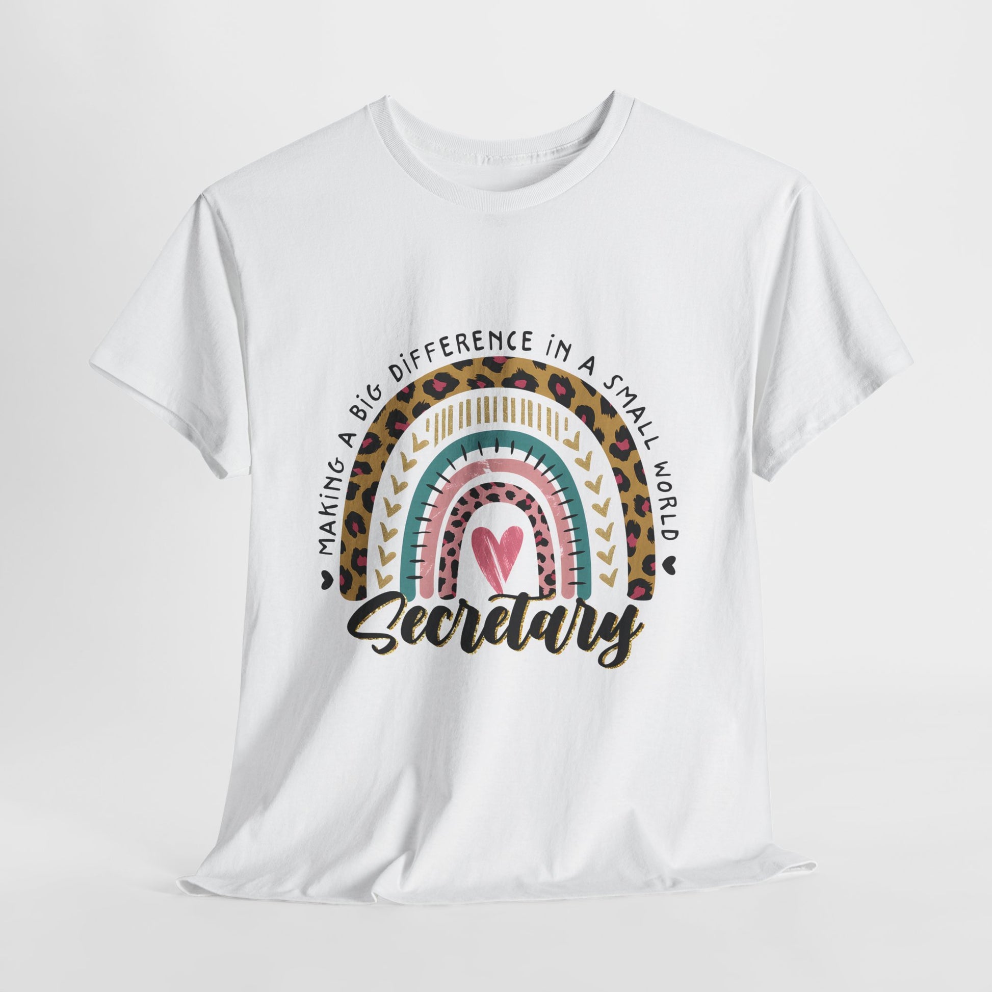 Secretary Rainbow Shirt - Cute Leopard Print Office Tee for Secretaries, Glam Animal Print Heart Gift, Boho Office Assistant T-Shirt
