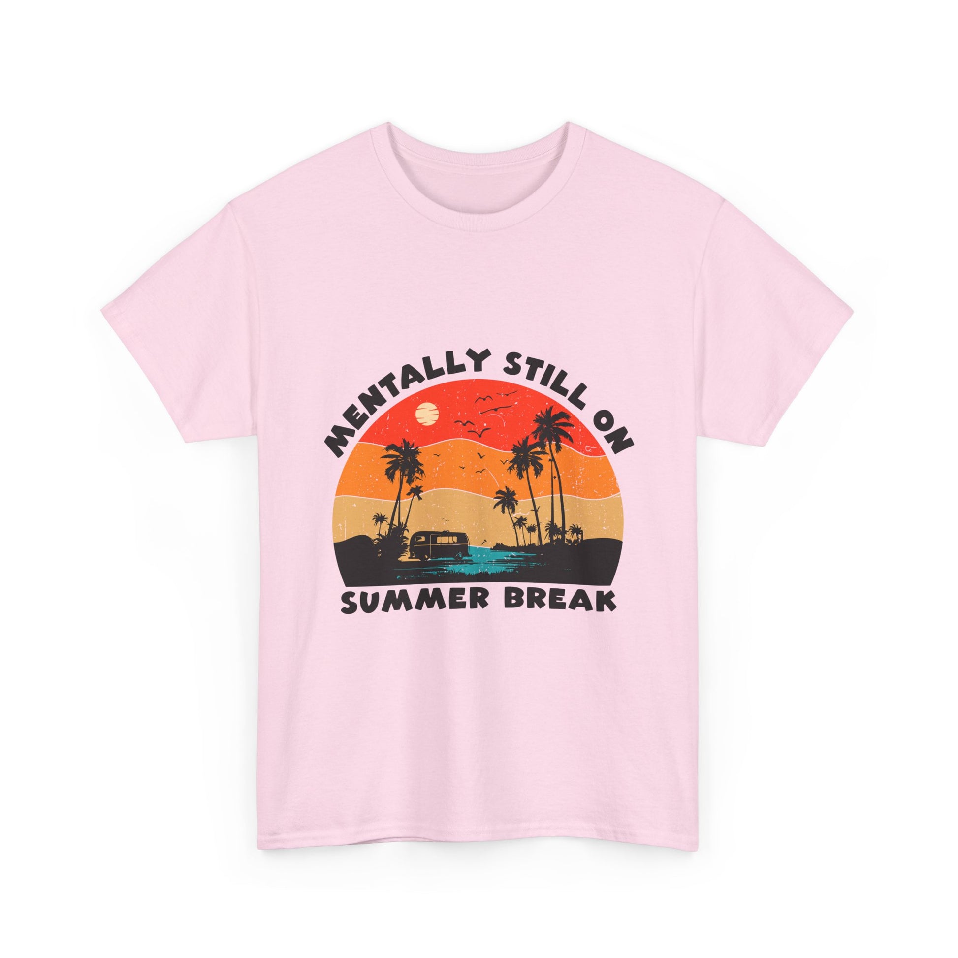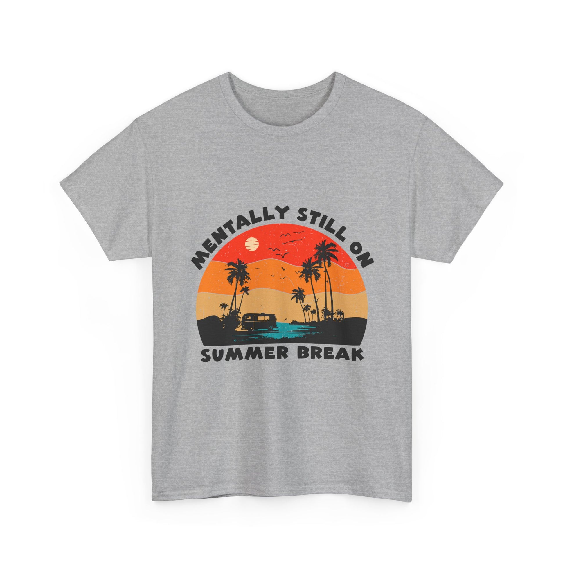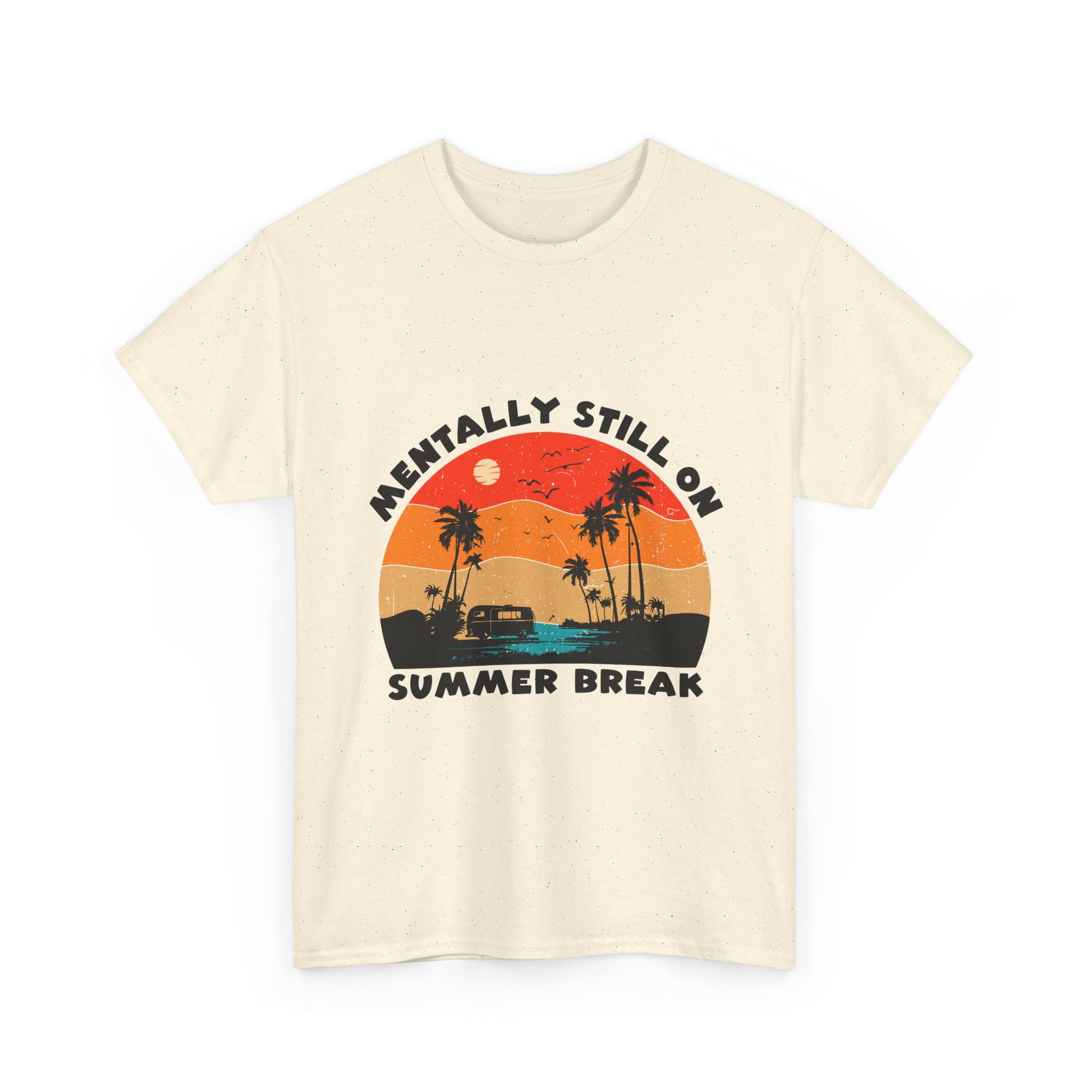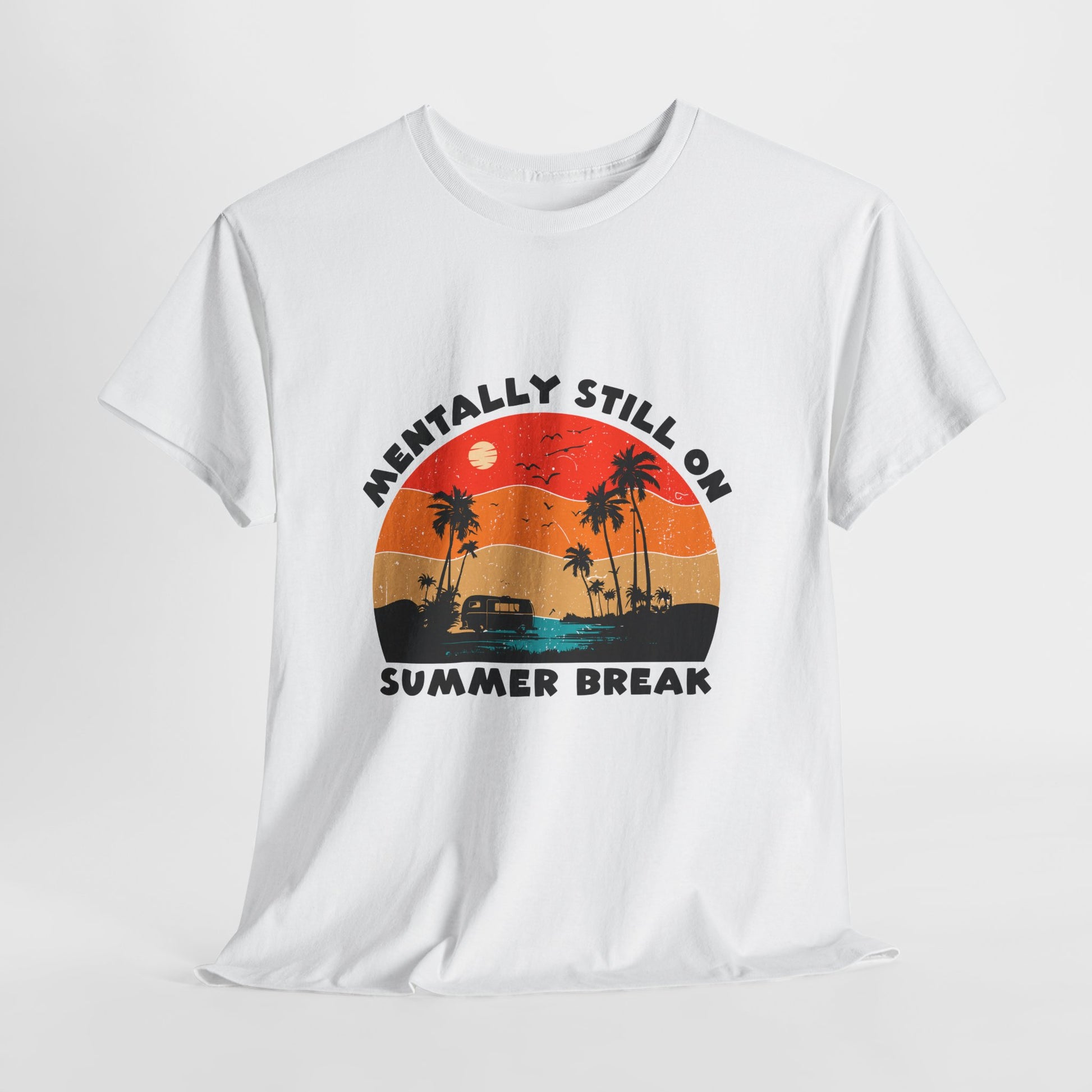 Still on Summer Break Shirt - Funny Back to School Tee, Retro Sunset Vanlife Vibes, Mentally on Vacation Graphic Tee for Students & Teachers