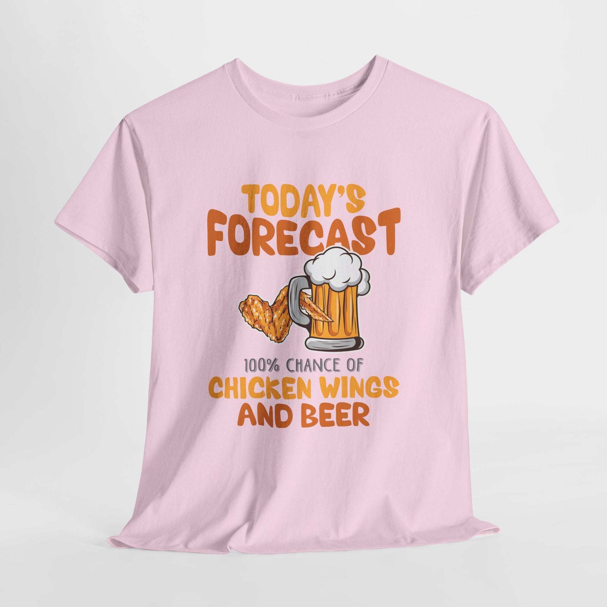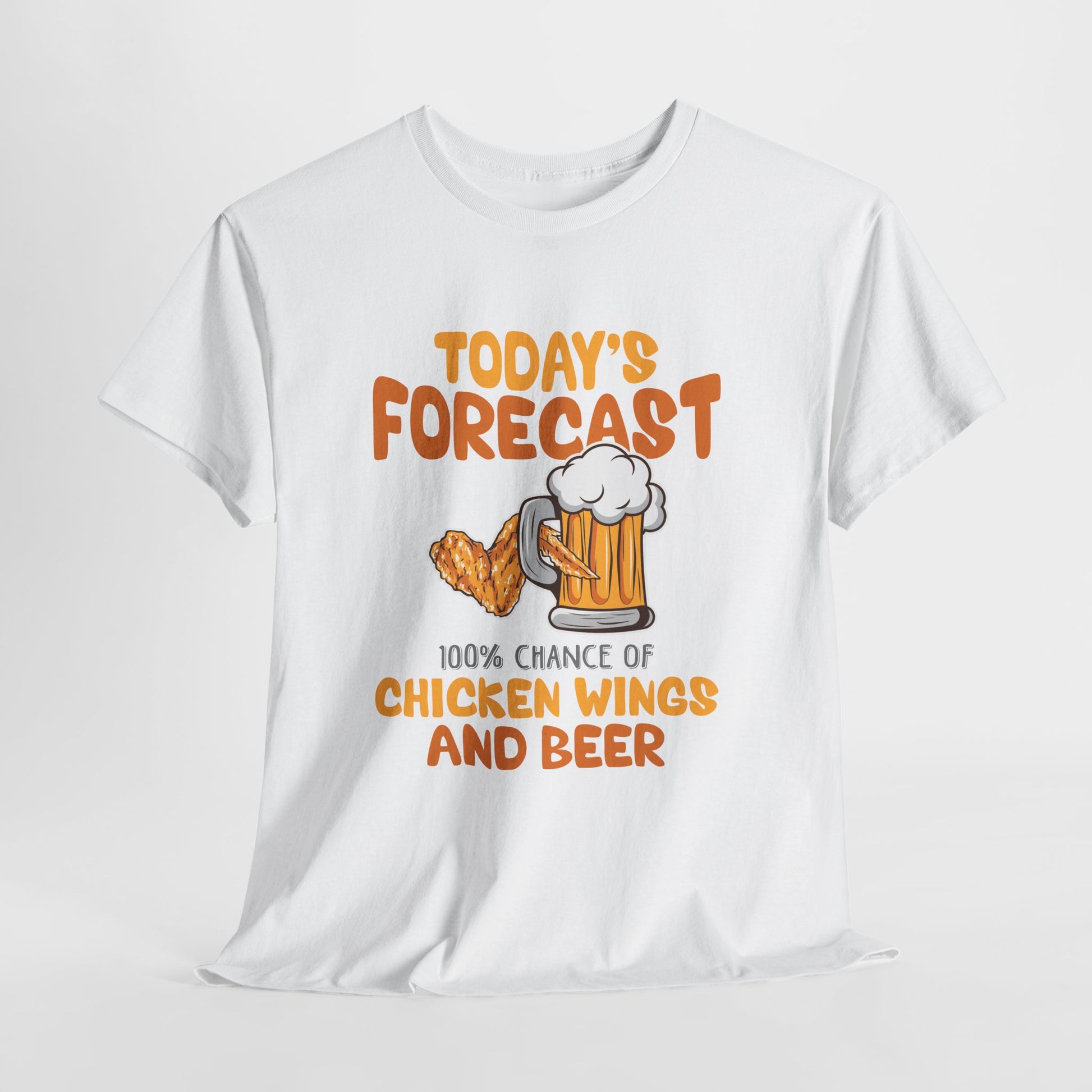 Today's Forecast 100% Chicken Wings & Beer T-Shirt - Funny Tailgate BBQ Tee