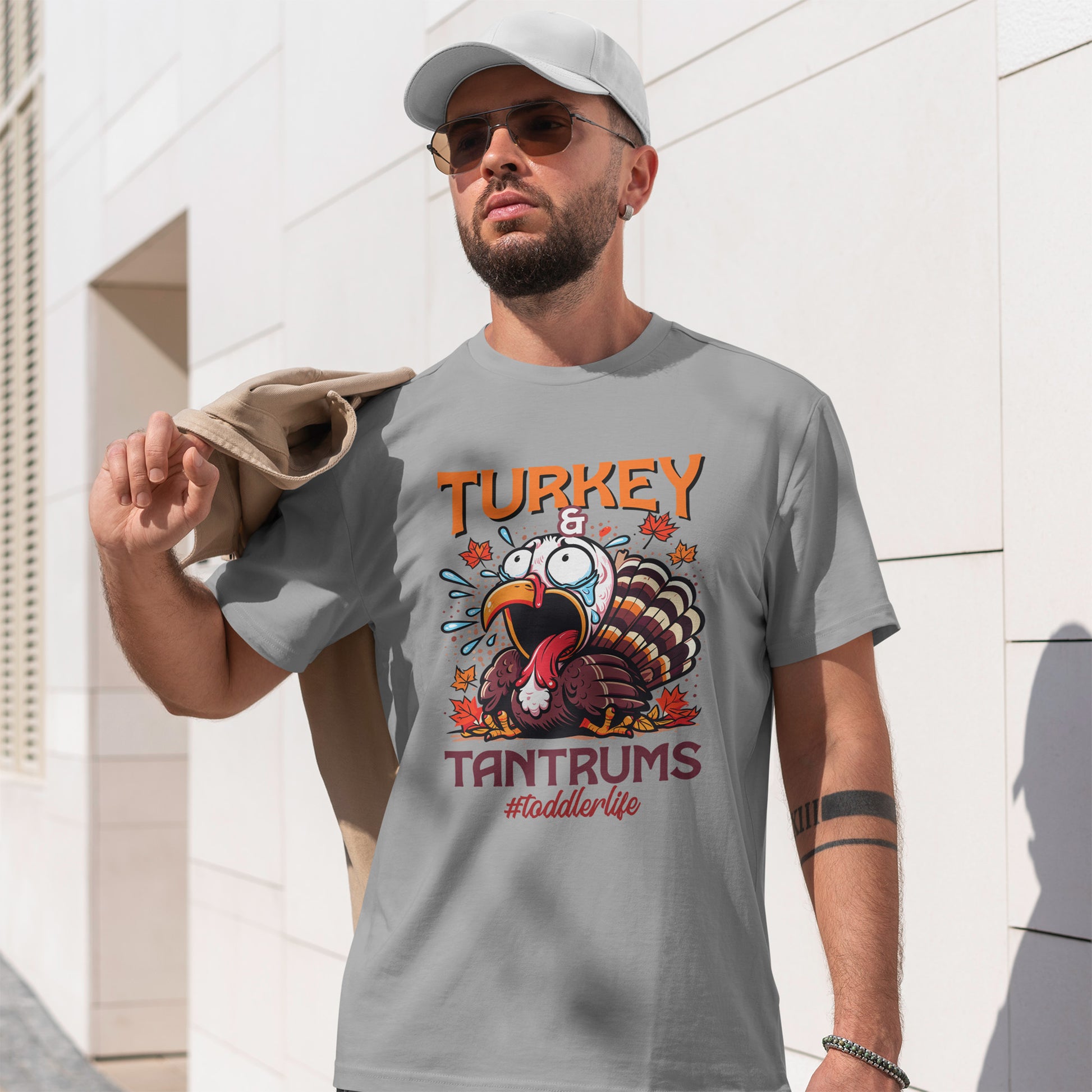 The Turkey and Tantrums T-Shirt keeps it real: turkey on the table, meltdowns under it. Bold cartoon turkey + cheeky #toddlerlife vibe = instant relatability for parents juggling mashed potatoes, family drama, and tiny tantrums.