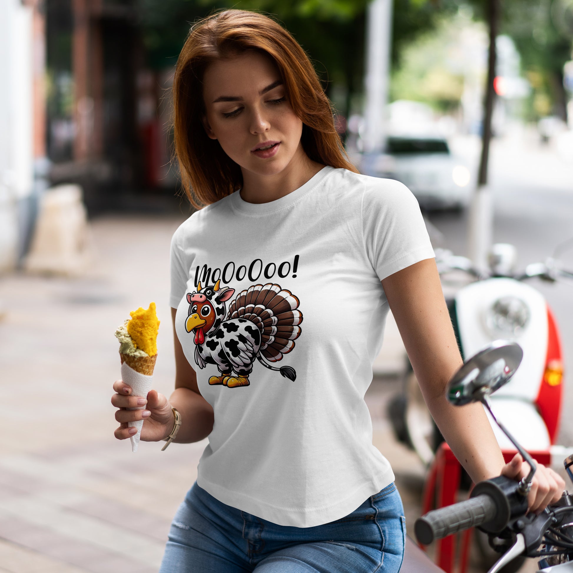 The Turkey Moo T-Shirt brings instant holiday laughs: a turkey in full cow disguise. Quirky, family-friendly, and totally unexpected — perfect for Thanksgiving dinner, Friendsgiving, and anyone who loves silly animal humor.