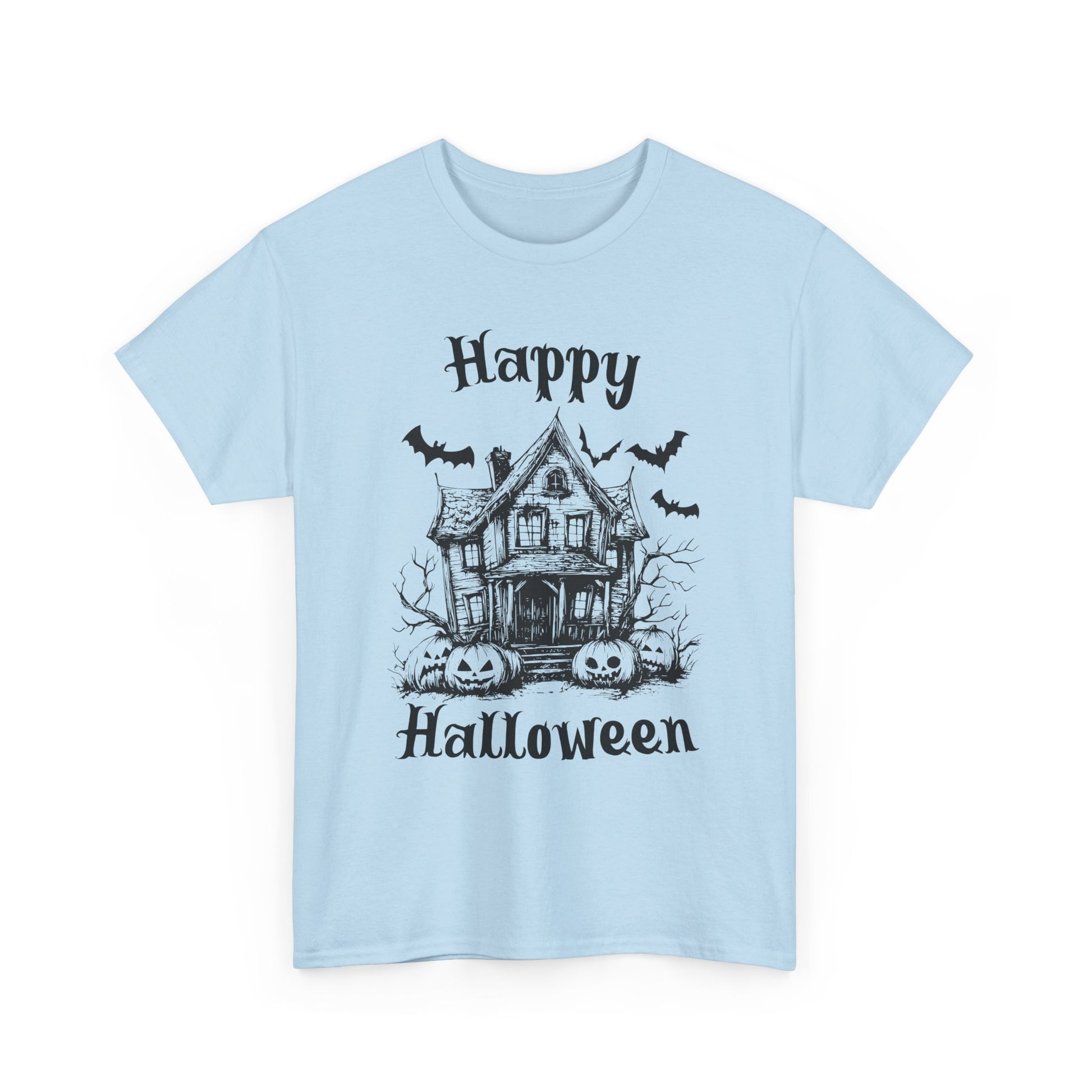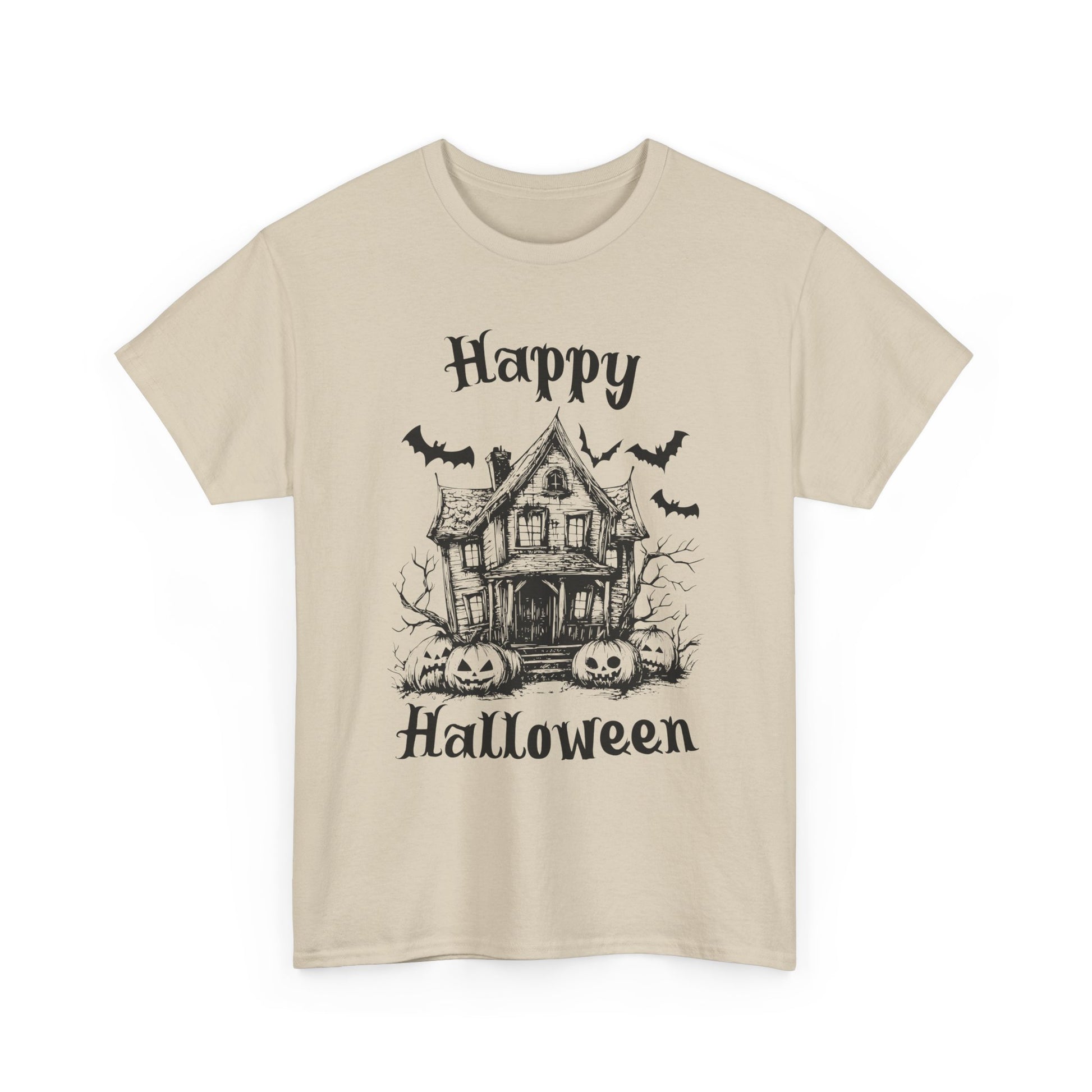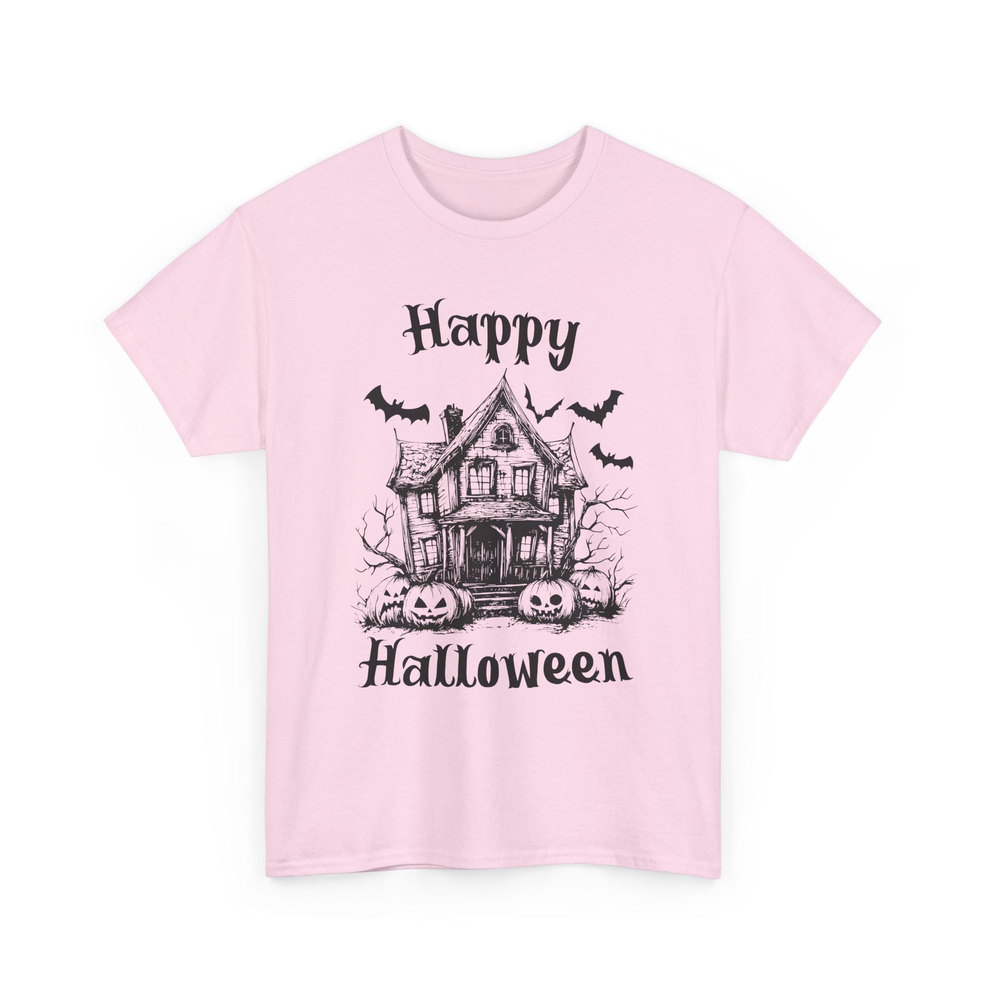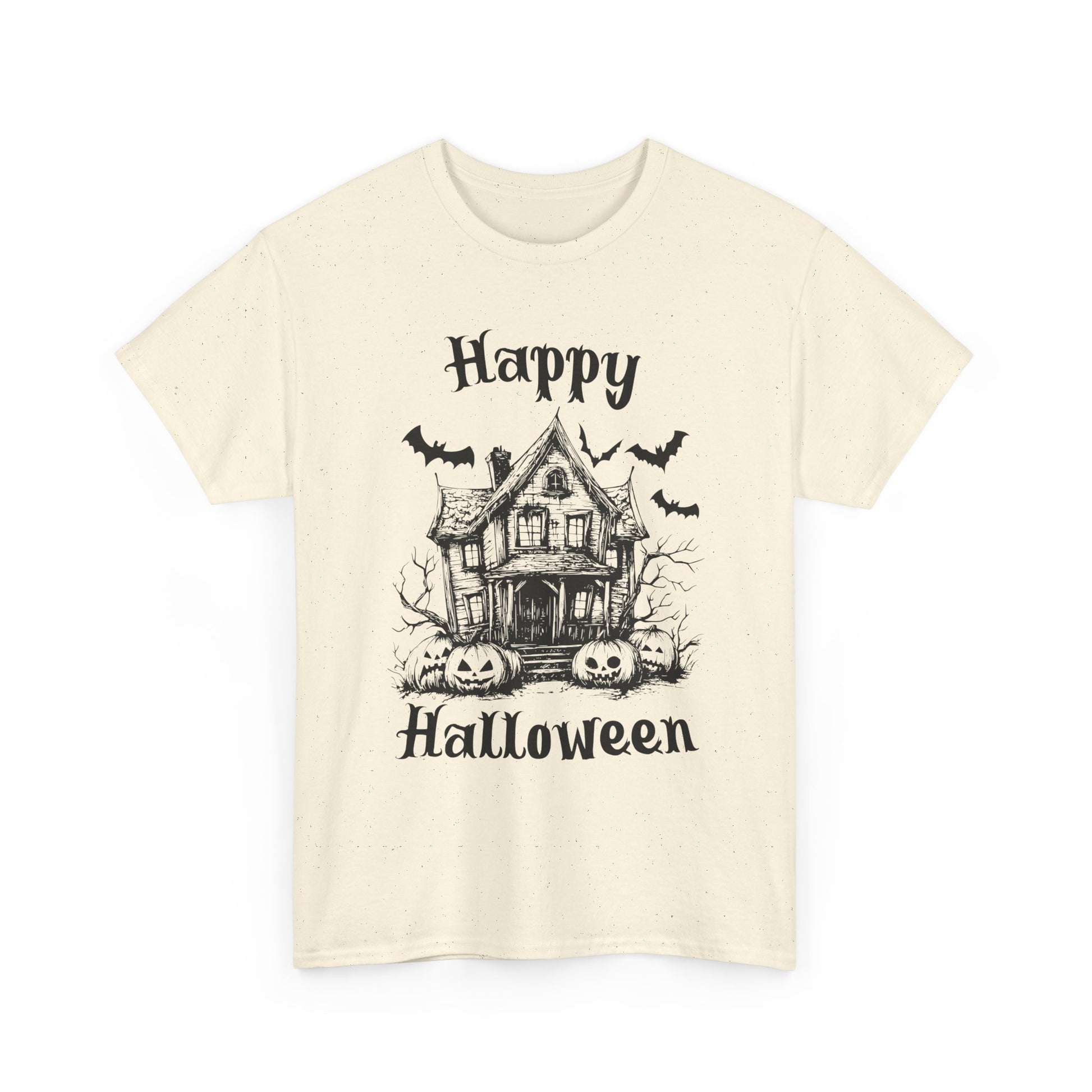 Vintage Haunted House Halloween T-Shirt - Gothic Pumpkins & Bats Tee