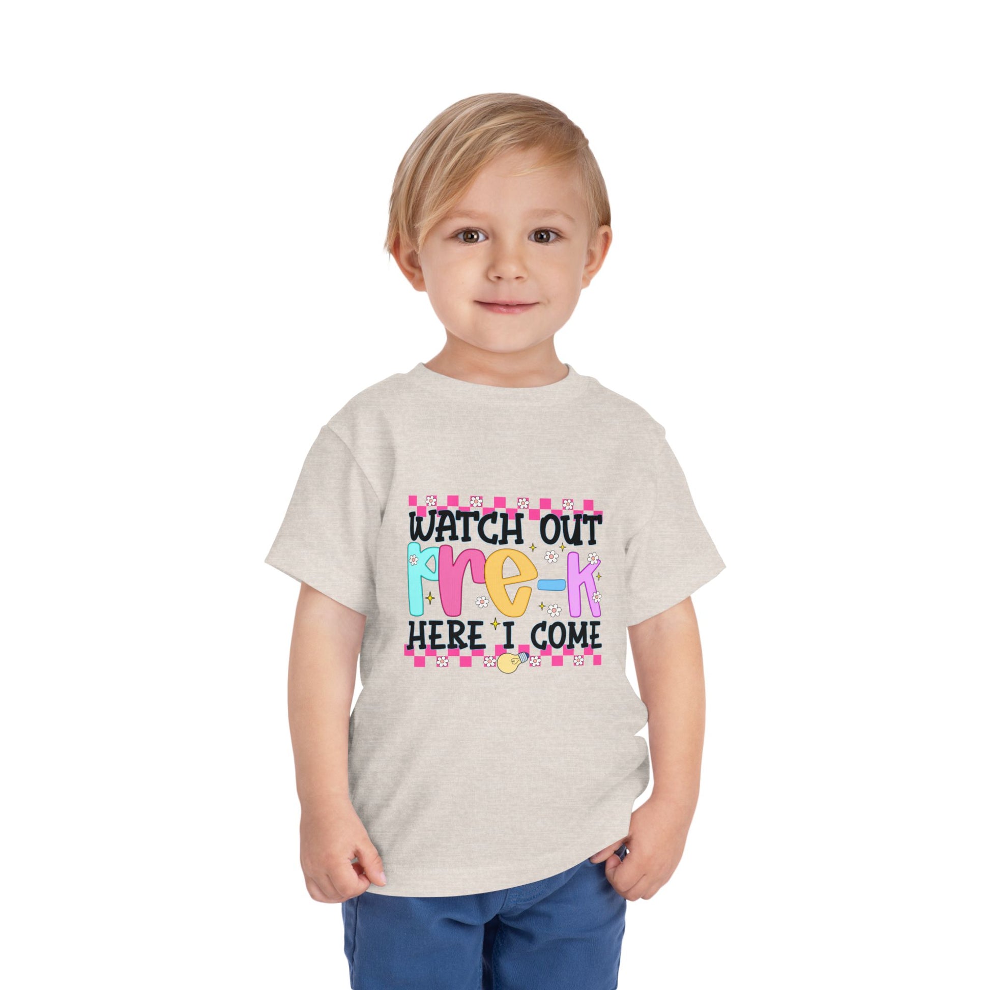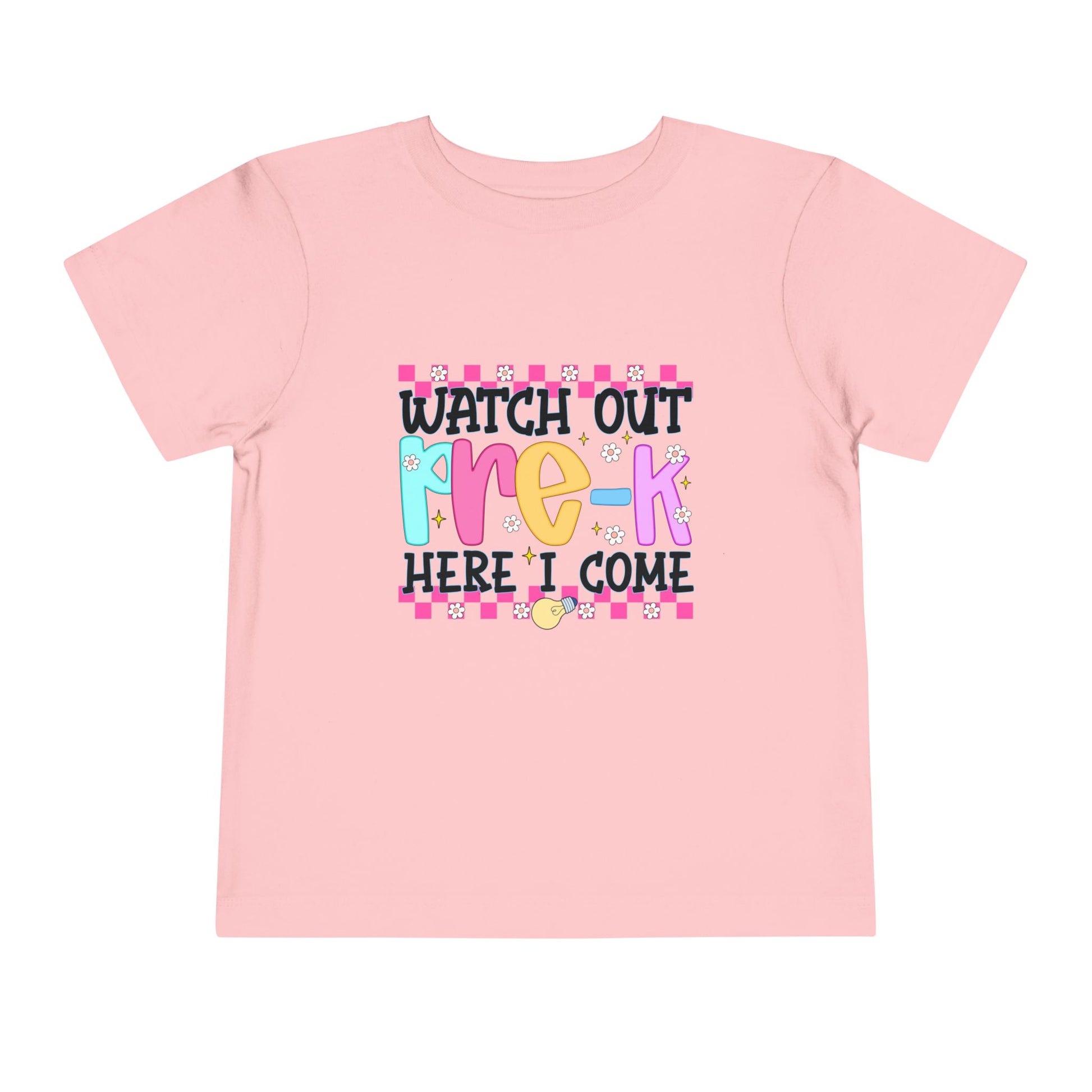 Watch Out Pre-K Shirt - Cute Toddler Back to School Tee, Preschool Here I Come Shirt for Kids, Colorful First Day of Pre-K Outfit