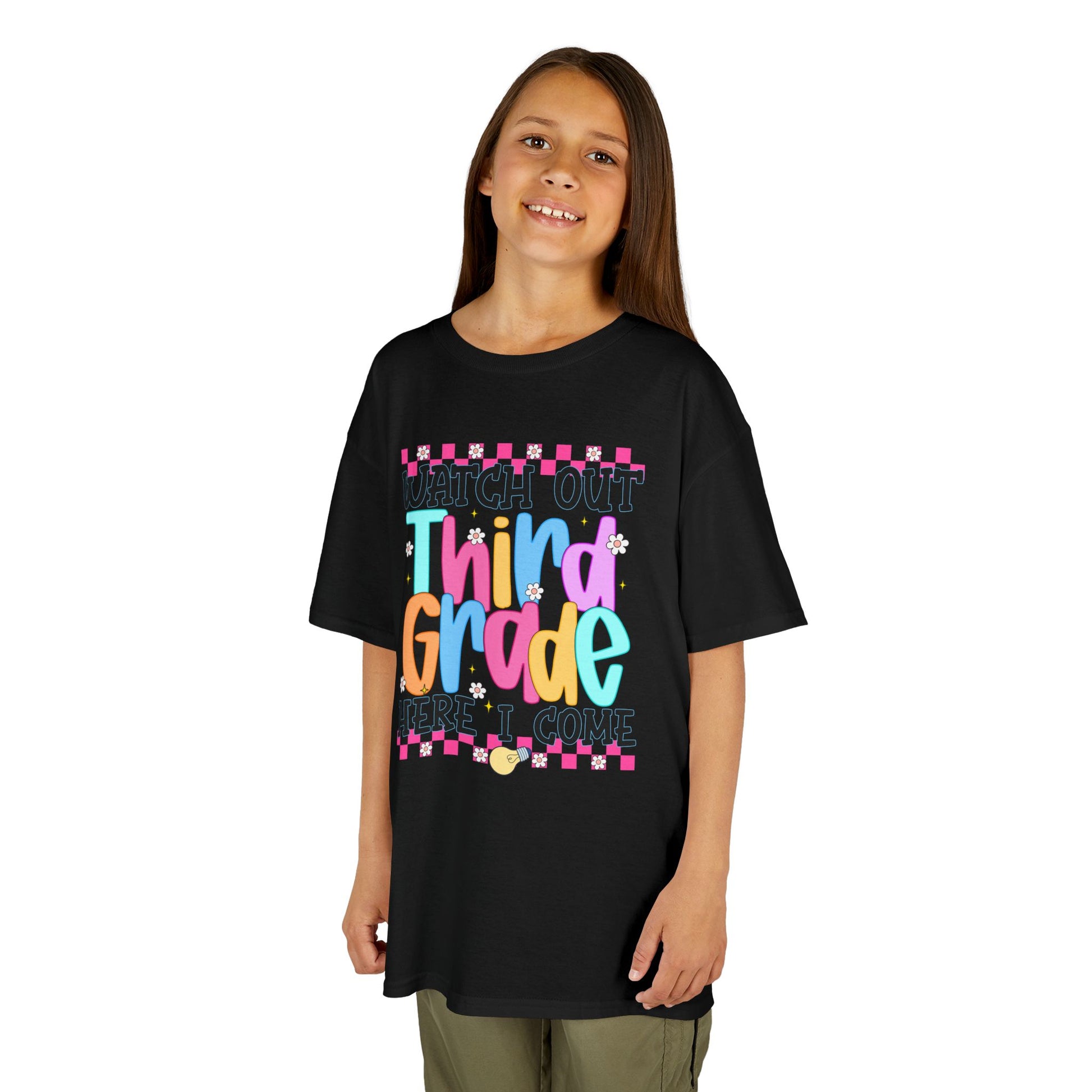 Watch Out Third Grade Shirt - Colorful Kids Back to School Tee, Heavy Cotton T-Shirt for 3rd Grade, First Day of School Outfit